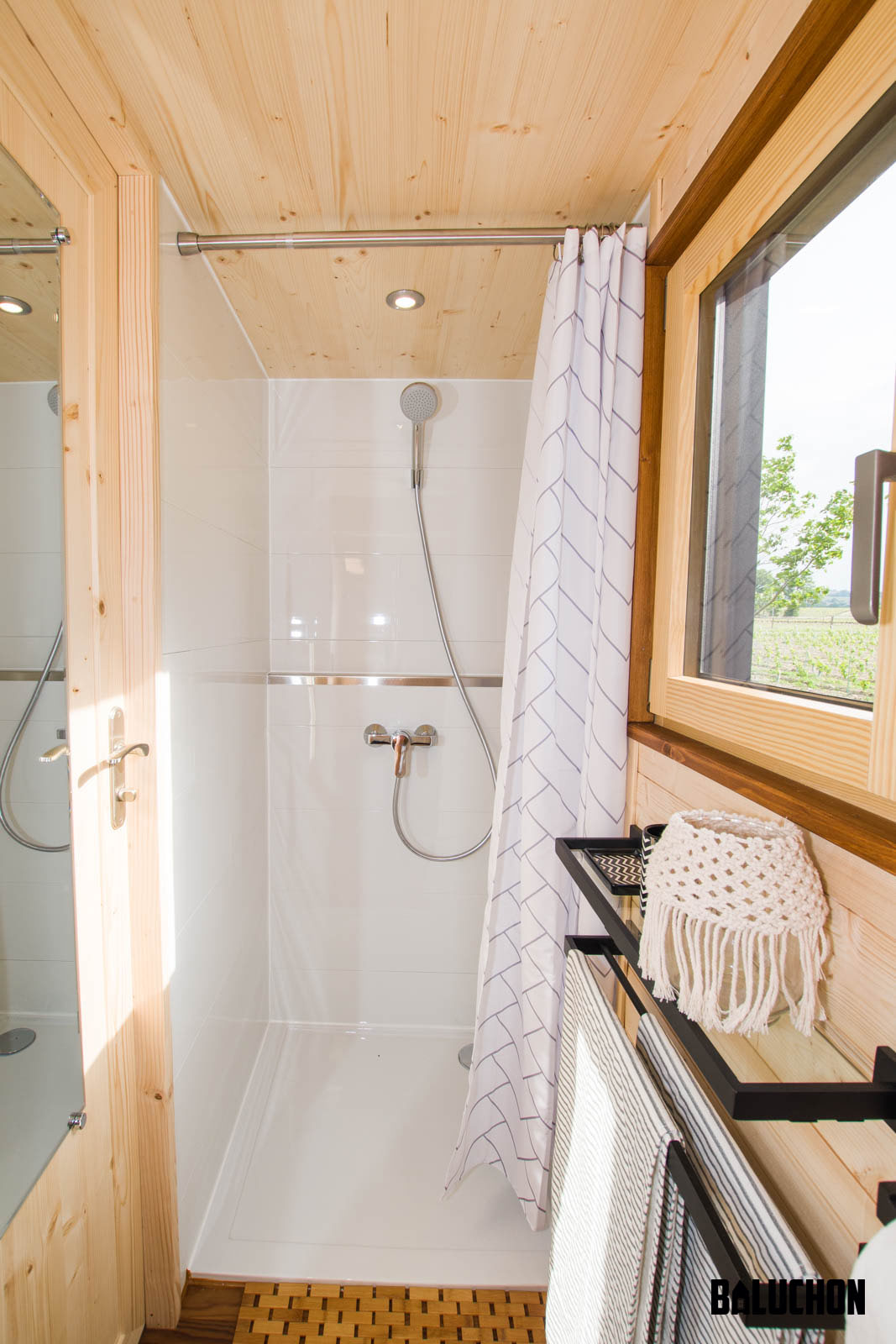 The modern exterior of the Astrild leaves a lasting impression on potential buyers and has a high curb appeal. You get to witness a fine combination of structural design and exterior décor elements that captures your attention instantly and gives this tiny house on wheels a supremely sophisticated look. The classy colour scheme also has a role to play in this and the entire exterior of this house radiates charm.
