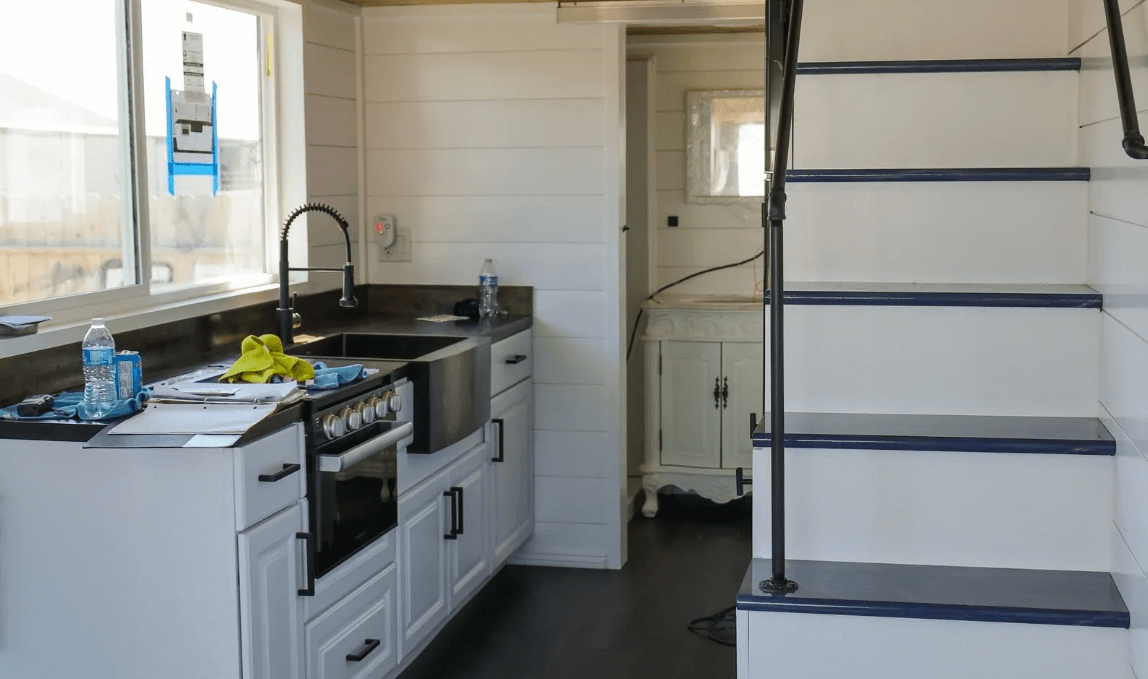 Efficiency is a priority in the Bay Cottage. With insulation rated at R13 for walls and ceiling, and R19 for the floor, this tiny home is well-insulated, providing comfort in any weather conditions. The 2x4 wood framing every 16 inches and 4x8 headers throughout ensure structural integrity and durability. The rough-in plumbing with ABS plumbing throughout and rough-in electrical with an indoor main electrical panel make it easy to customize and connect to utilities.