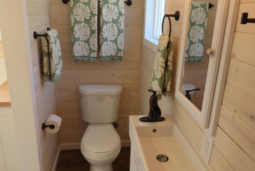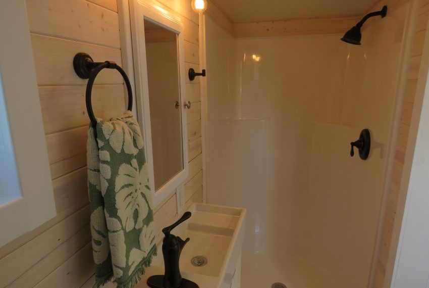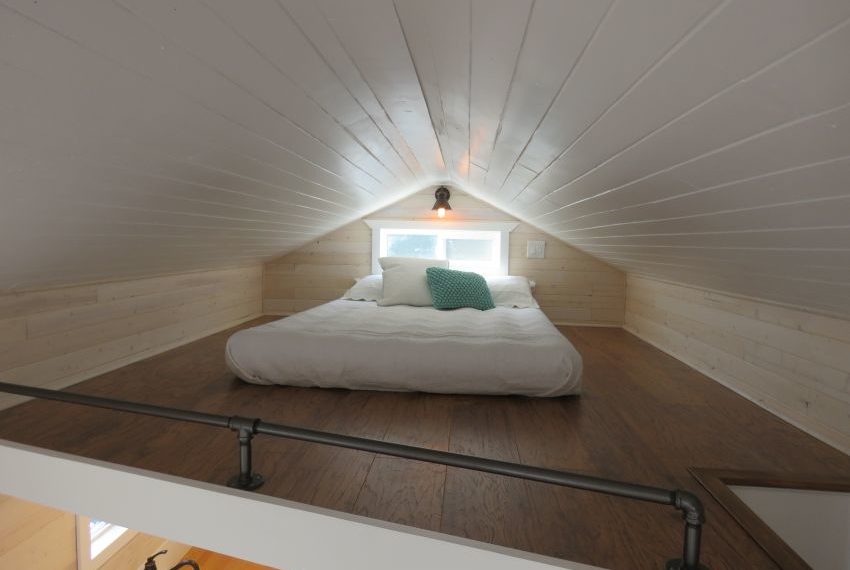 The bathroom provides unlimited hot water with a tank-less water heater. You additionally get a classy sliding barn door in the washroom along with all the other basic washroom amenities such as a full 36 inch shower, a standard toiler and a washbasin and vanity combination to complete the look. The sleeping loft can hold a king size mattress and comfortably accommodate up to 2 people.
