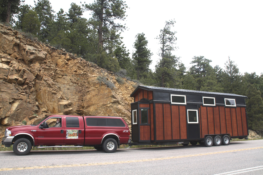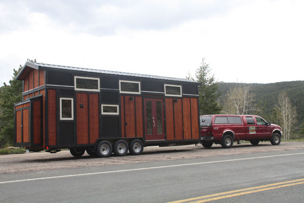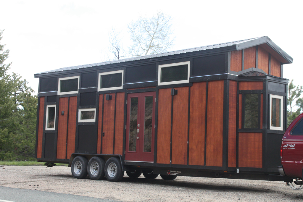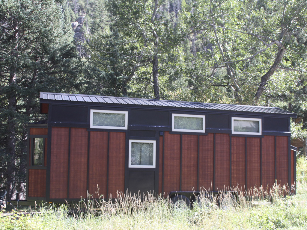 You will find mini black cylindrical lights mounted on the wall to keep the outdoors lit. In terms of keeping the space well lit, a multitude of weather shield windows proves to be of extreme importance as they aid in bringing in sunlight and also help with proper ventilation. The use of Breckenridge lap siding gives this tiny house its amazing texture coupled with flat metal for the black portion. The sleek look of the roof is not only stylish but is also very practical as the cathedral design prevents any water leakage inside the house.