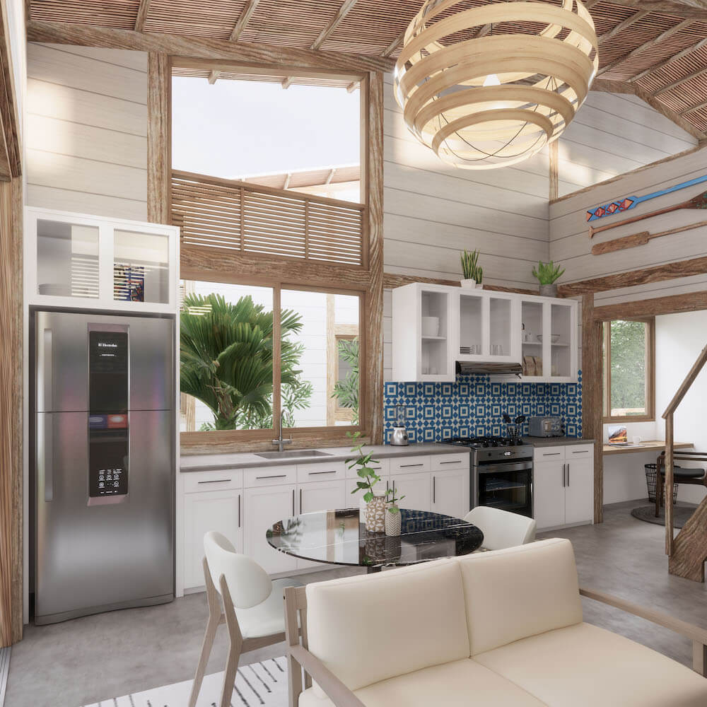 Aruna is perfectly located on a private peninsula of the island yet a short shuttle-boat ride to the bustling tourist center of San Pedro town and the airport on Ambergris Caye! So, enjoy your day at beachfront restaurants and bars, shopping in the many eclectic shops, and snorkeling or diving the world’s largest living reef. But then slip back to your oasis away from the bustle as you boat right up to your private pier to your amazing eco-friendly waterfront home.