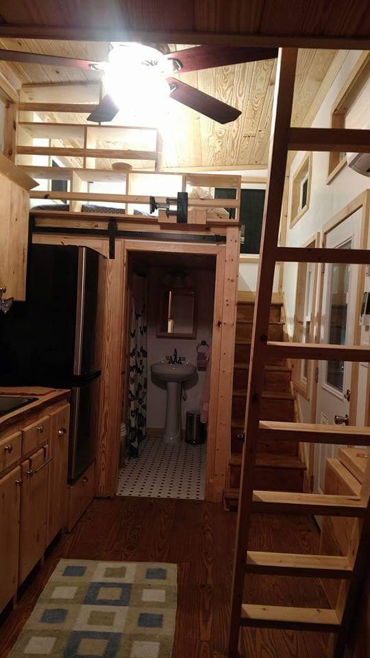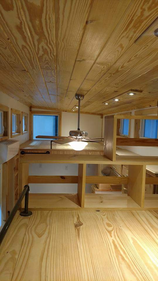 A state of the art bathroom is provided with a tile shower along with all the required amenities in the face of a residential toilet and a wash basin with a mirror on top. A vented washer and dryer combination is placed under the stairs that lead you to one of the two lofts which also has a custom book nook to enhance its versatility. The two lofts are spacious and can easily accommodate up to 4 people where each loft has the capacity of sleeping up to two people. One of the lofts has 80 square feet of space that you can make use of.