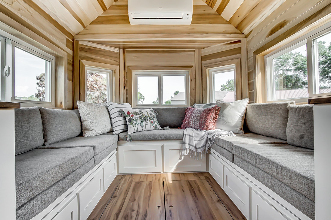 Introducing Clover, a stunning Kokosing model tiny home by Modern Tiny Living that echoes the design aesthetic of their popular "Point" model. As you step inside Clover, you'll immediately notice the exquisite poplar woodwork, sleek concrete countertops, and a fully-equipped gourmet kitchen. This tiny abode, complete with a full bathroom and Modern Tiny Living's signature social area, is the perfect residence for both full-time living and traveling adventurers.