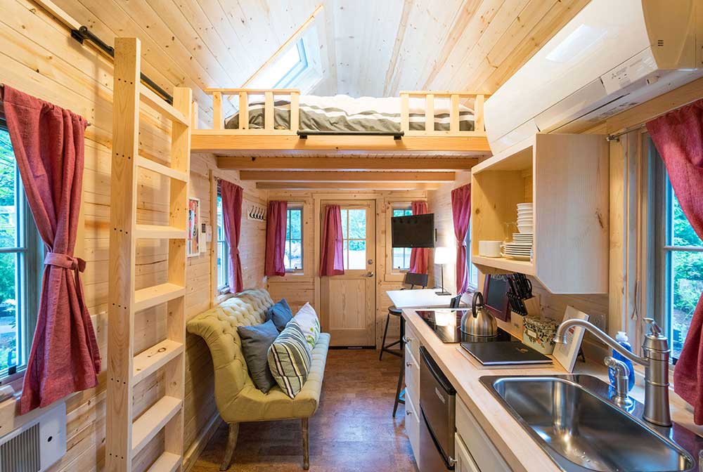 The ELM is a tiny house on wheels that was first built back in 1999 and what’s intriguing is that the design hasn’t changed since. This legacy has been maintained in the form of a well-designed, spacious and effulgent tiny house. The house needs minimal efforts in terms of decoration as it already exudes rustic charm. Its capacity of accommodating up to 3 people lets the residents make most of the 2 lofts, the great room and the flex room.