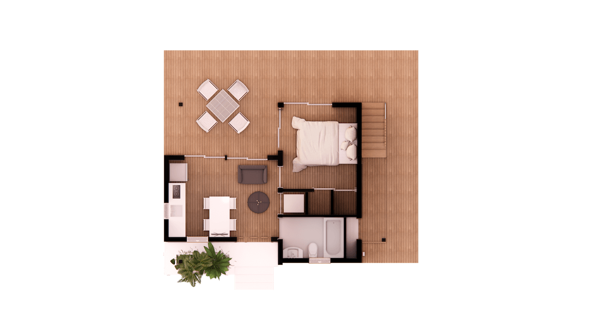 The community orchard and gardens, the pool, and the restaurant serve as fundamental facilities that enhance the utility value of the Freedom Village homes. The Orchid is the smallest tiny house out of the three models available in the Freedom Village project. You get two floors and the layout of each floor is quite commodious. An open staircase lets you make your way directly to the top floor and it is accessible from the patio of the house. This may be a slight drawback as you don’t get an indoor set of stairs.