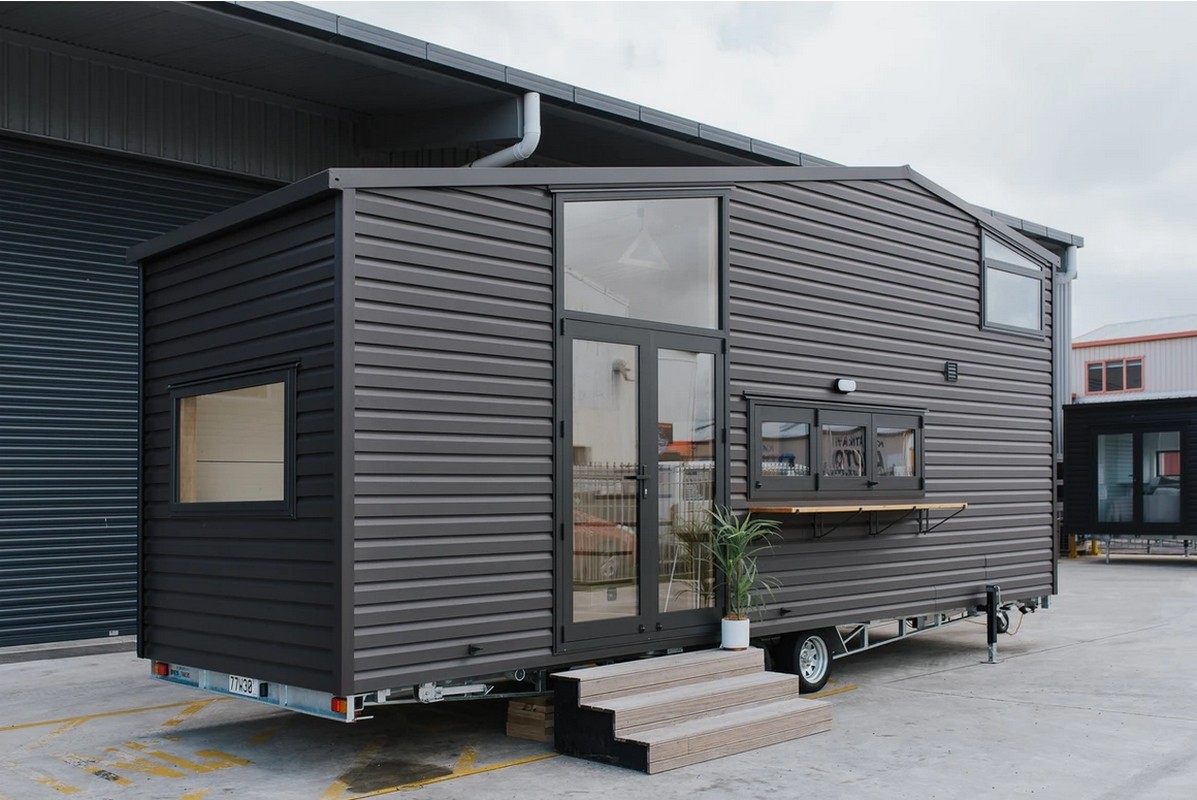Hilltop boasts an array of features that further elevate its allure. The on-grid 16-amp caravan connection, prewired for solar power, ensures a seamless transition to sustainable energy sources. The single loft, accessed by a sturdy ladder, provides a private sanctuary for rest and relaxation. Measuring 8 meters long and 2.4 meters wide, this tiny home maximizes every inch of its compact footprint.