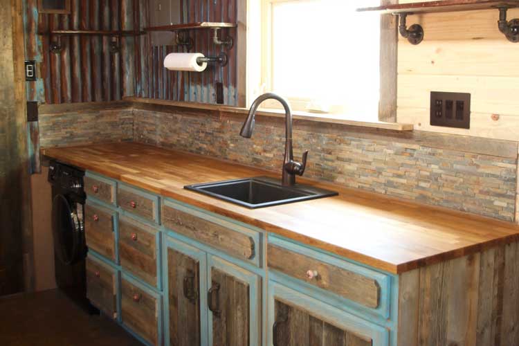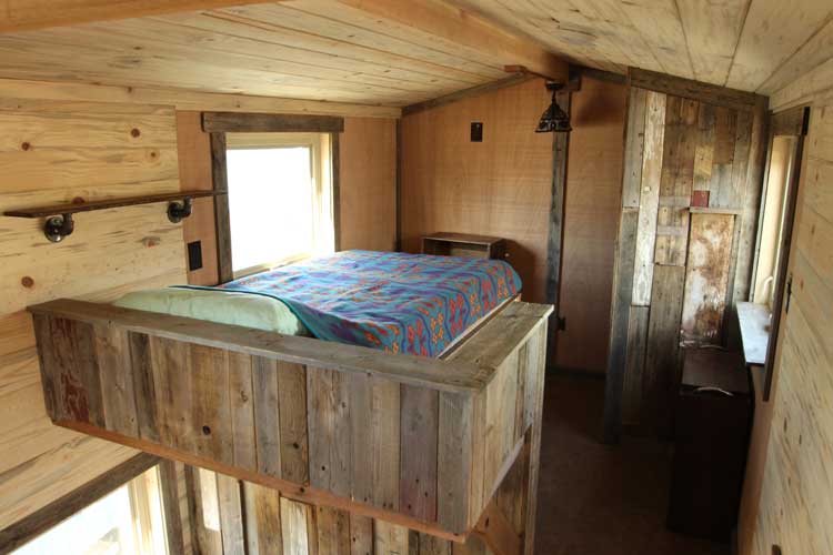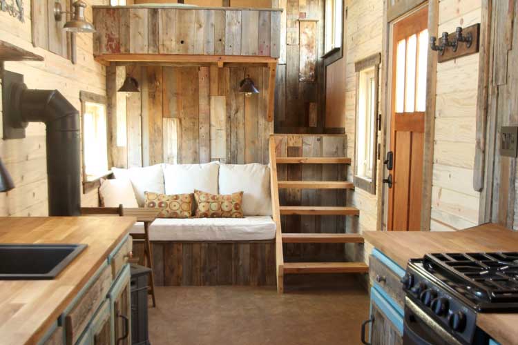 This manufacturer of this tiny house is SimBLLISSity, one of the leading tiny house makers. The exterior of this tiny house is colored in beige and brown colors. Window borders are colored in white color which adds up little extra to the beauty of this tiny house. This house features a modern kitchen, bathroom, living space, and bedroom loft. The interior of the house is colored in beige and light brown colors, a lot of wood finishings can be seen in the house. Ceiling lamp lights are there to light up your house.