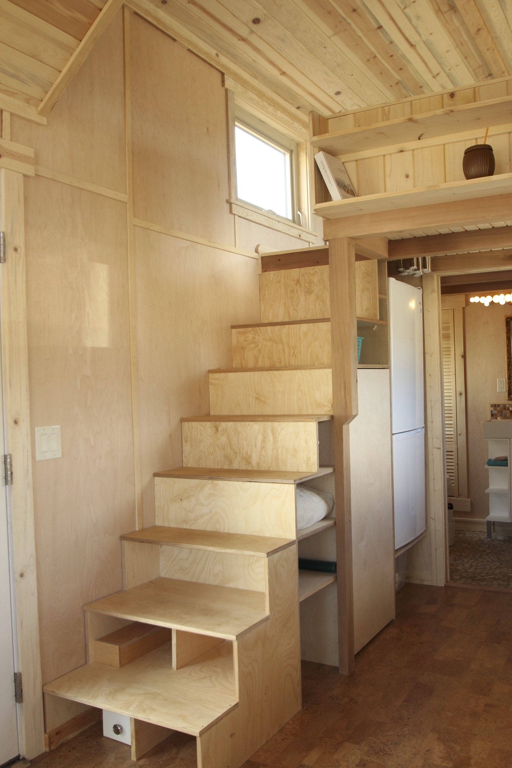 Enjoy stargazing in your queen-sized bed. Read and store books and other important things on the bookshelf inside your 12’x 8’ smart and tiny bedroom. Enjoy fresh ventilation while you sleep with provided windows.