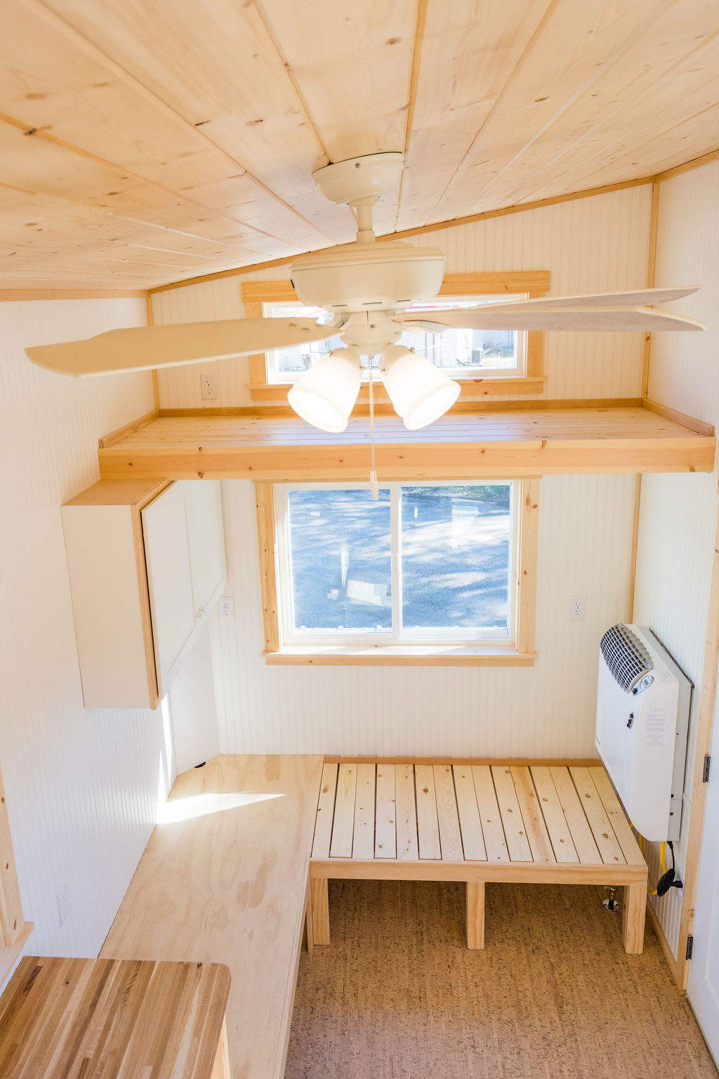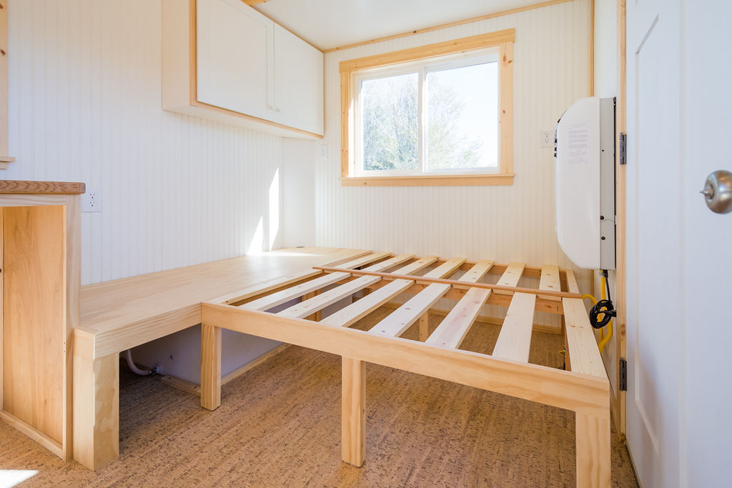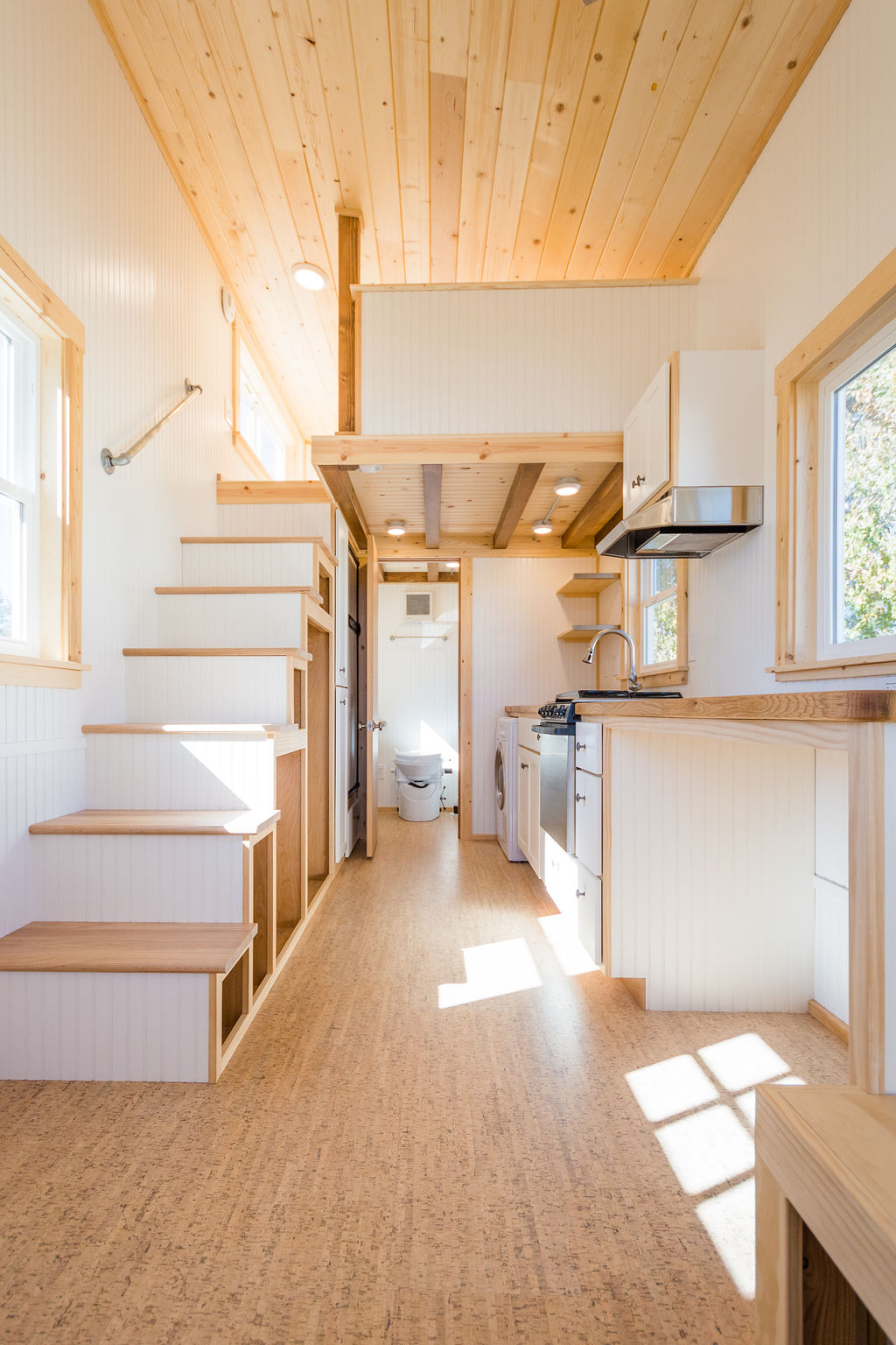 You step up the stairs and come to your bedroom loft that is beautiful and quite minimalist. Storage compartments are there in the bedroom that acts as a wall at the same time. The headspace is pretty okay and your head won’t get hurt whenever you wake up in the morning. Arm support or railing is also there while you climb the stairs to the bedroom.