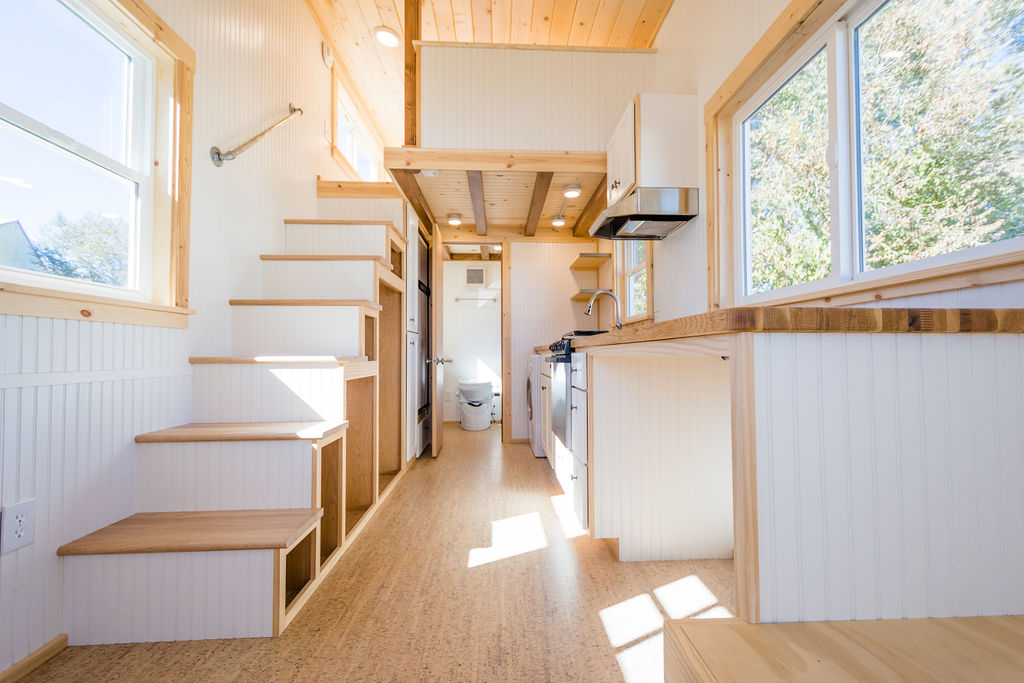 Kailey’s by MitchCraft is a modern tiny house built for their client named Kailey, who wanted a minimal looking yet modern tiny house. The color of this tiny house is very pretty and calming that is sage green and white. White-colored windows and doors enhance the beauty of this tiny house. The interior of this house is quite soothing because of the white and brown theme.