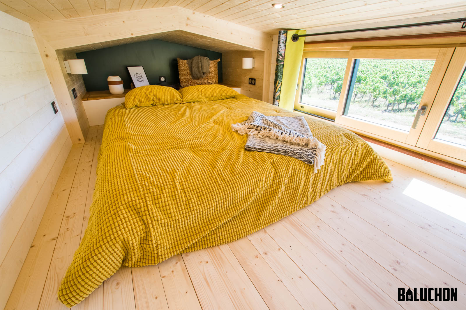 The bathroom has a dry toilet and other basic amenities such as a basin and an 80 x 80 cm shower that fulfil the purpose. The sleeping loft on the other hand comes with enough storage facility to let the occupants store their luggage safely. A queen size mattress is placed in the sleeping loft that can sleep up to 2 people comfortably.
