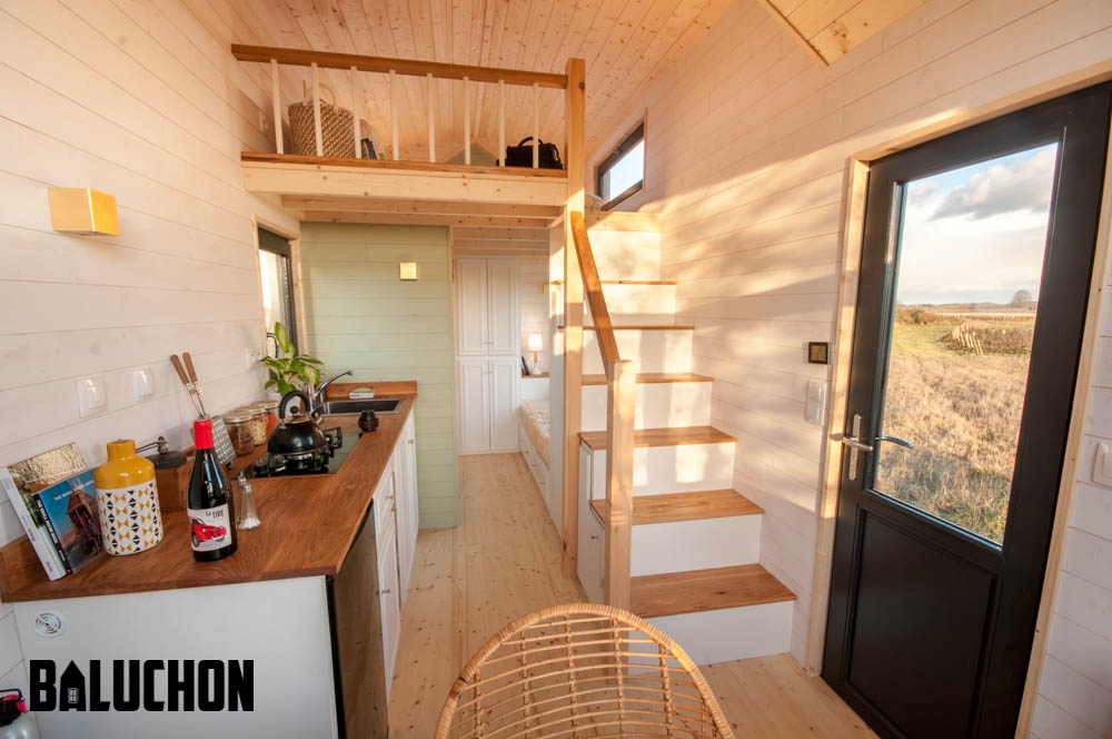 Being only 20 feet long, this home has a lot of storage space and features to accommodate most lifestyles of individuals or couples. Another great option to look at when shopping for tiny homes in Europe.