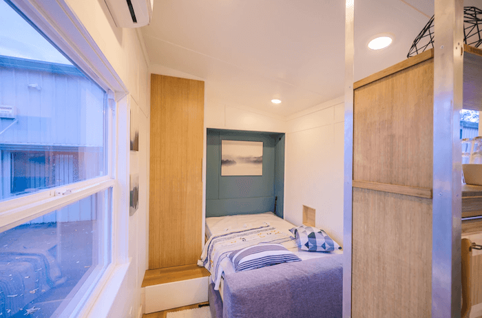 This 8' x 22' tiny home apply named Lakehouse Cabin has all the necessities built into its core design and layout and then plenty of additional features.