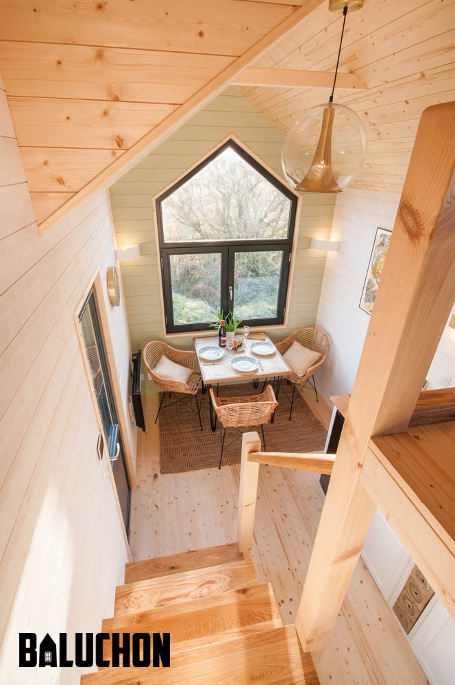 The gable roof prevents rainwater damage and also adds on to the beauty of Le Petit Prince’s external facets. The glass windows prove to be especially helpful in brightening the interior’s aura. People who love warm and radiant houses would be easily enticed at the sight of this tiny treasure as the number of windows installed in Le Petit Prince pour plenty of natural light inside the house and also let the residents enjoy the picturesque views of the outside world.