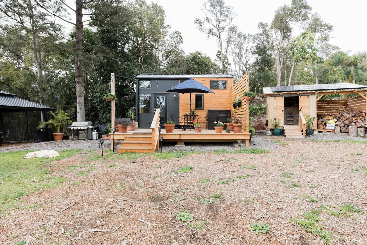 Lehua is nestled within three acres of enchanting Ohia forest, offering a tranquil retreat that feels miles away from the bustling world. The property is shared with two other tiny home units, creating a vibrant community atmosphere. Guests can gather around the communal bonfire area or enjoy a delicious BBQ, making memories that will last a lifetime. Whether you're traveling solo or with a group, renting one or all three units guarantees an unforgettable vacation experience.