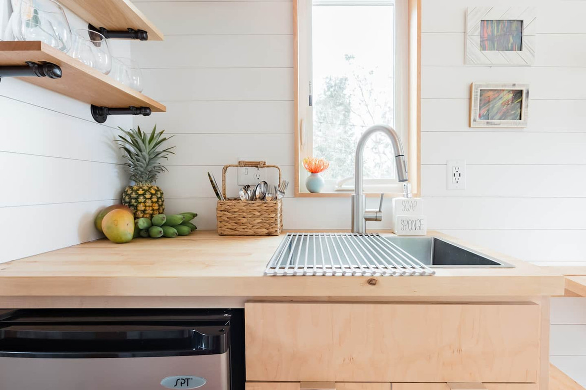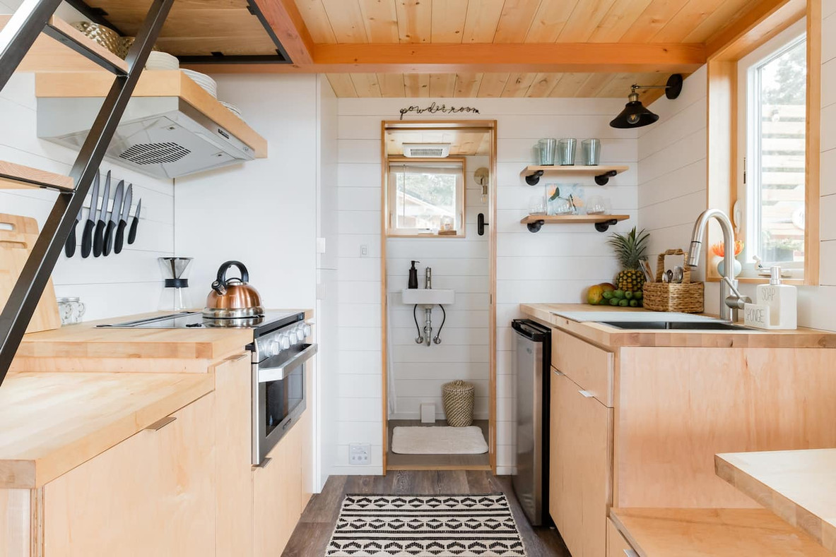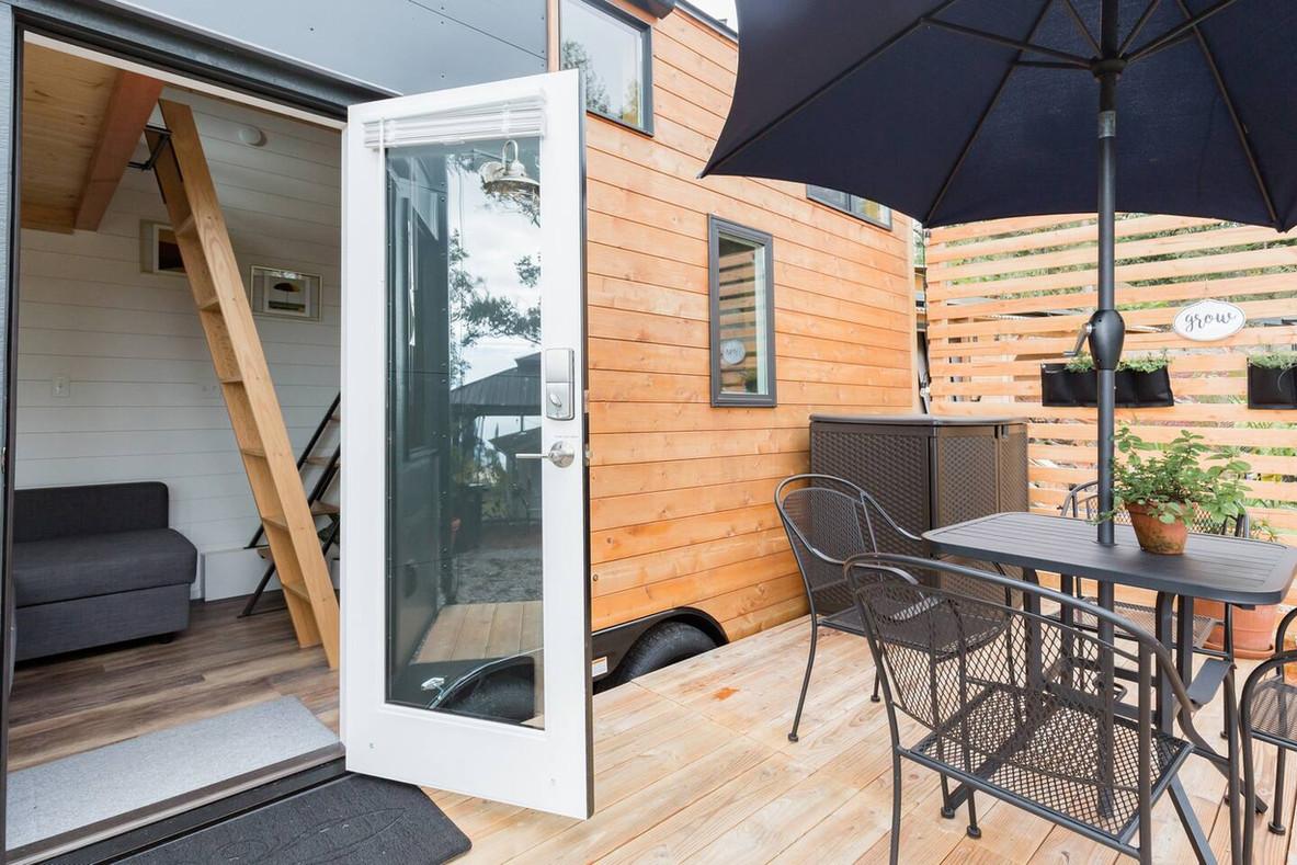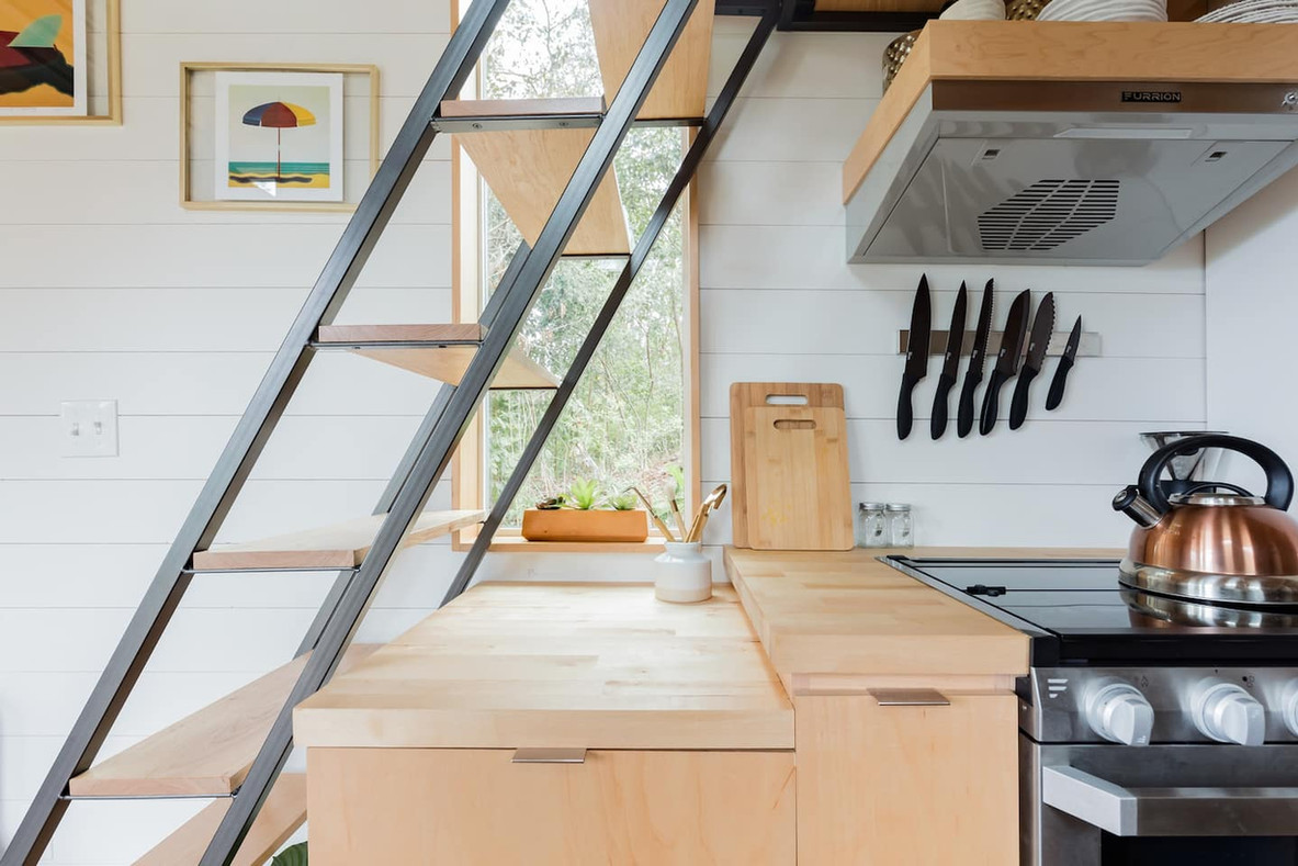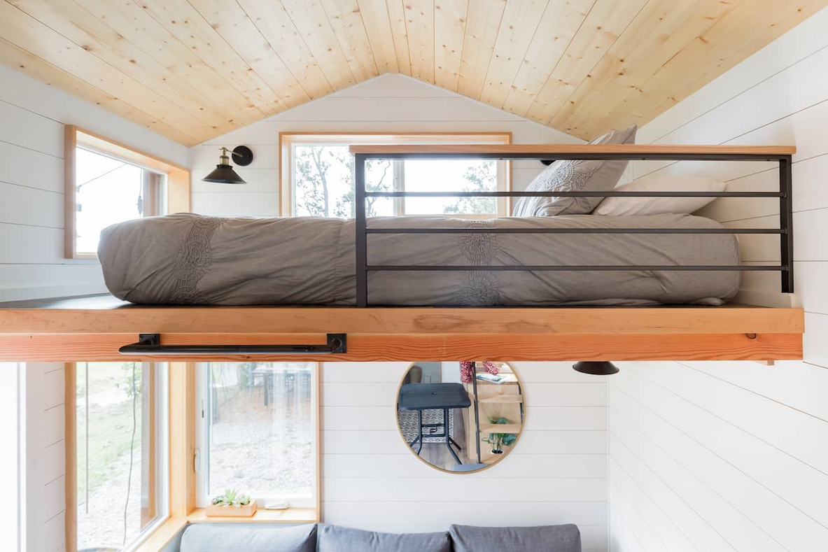 As you step into this 18-foot tiny home, you'll find yourself in a warm, inviting space that sleeps up to five guests. The well-designed layout features a queen-sized loft bed, a comfortable queen-size sleeper sofa, and a cozy twin loft. The natural wood interior creates a charming atmosphere, seamlessly blending modern efficiency with a welcoming, rustic vibe.