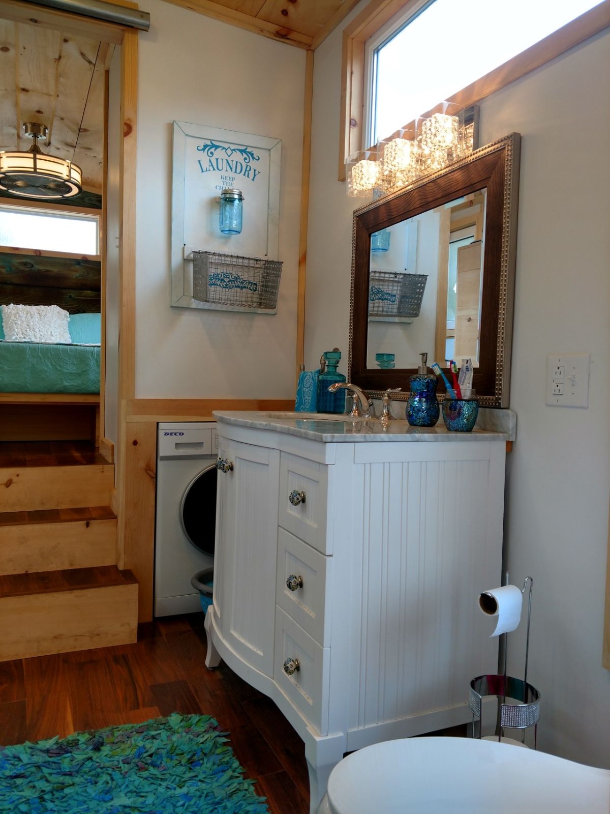 The Luxury 40 is rightfully named as it provides luxury packed in a spacious tiny house. The unique features such as a projector and an 84 inch screen with thoughtful consideration to the decorative aspect of the interiors really allow the Luxury 40 speak for itself. The design, the layout as well as the amenities all together make this tiny house a steal deal.