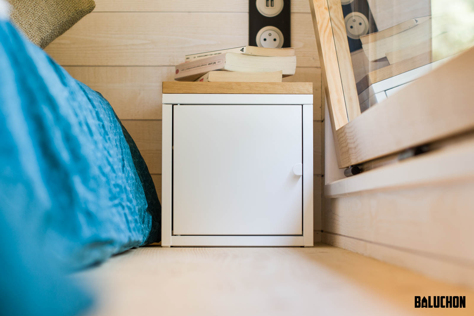 There is a shower cubicle with glass doors in the bathroom along with a dry toilet with a stainless steel bucket. Another great space saving feature of the Martolod is the oak staircase that leads you up to the bedroom loft comes with built-in storage compartments. The sleeping loft can easily accommodate up to two people as it holds a double bed and two small tables.