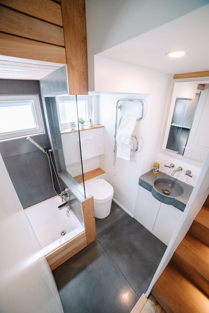 Love all the details built into this tiny home. There's plenty of space, and it doesn't feel like a sacrifice, it truly feels like a step up in life! The design is incredibly well thought out, and the aesthetics are clean, modern and most importantly, not gaudy or over done.