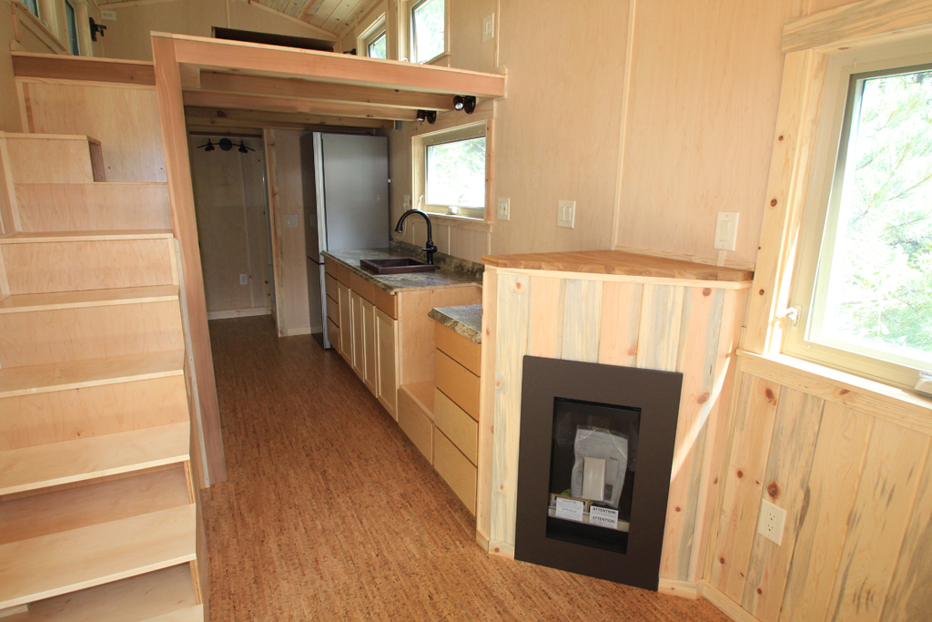 The adjacent stairs leading to the bedroom loft have in-built storage facility on the entire side as well as on the inside of the front few steps. The bedroom loft has multiple windows that keep it illuminated with sunlight during the day and you can conveniently adjust a queen-sized mattress here to sleep up to two people. The bathroom offers some satisfactory amenities such as a 6.5-gallon minute tankless propane water heater and a 2 piece fiberglass shower with a premium fixture.
