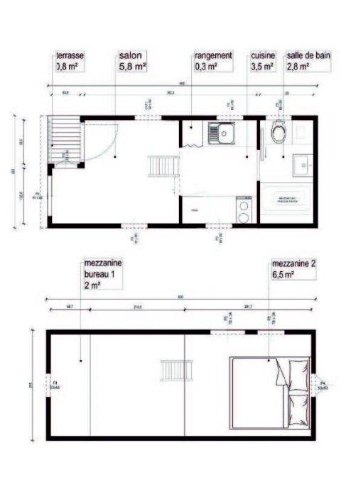 The interiors hold a single loft layout that can accommodate up to two people conveniently. The house comes with a scope of customisation that allows the residents to give their home a personalised touch. Customisation options include Canadian Red Cedar Cladding, larch terrace, Hybrid photovoltaic kit for complete autonomy and wood stove and a fireplace. The kitchen of the house is equipped with all the required amenities for cooking and cleaning in the shape of a stainless steel sink and a cooktop. The bathroom bears a solid dry toilet, a wash basin and a showering area to fulfill the purpose.