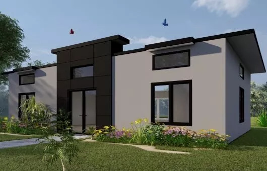 One of the unique features of the "Namaste" tiny home is that the exterior is fully customizable, and you get to choose the facade, siding materials, and colors you want. The photos displayed below show the current exterior and interior of the ADU shell, as well as an artist's rendering of 12 different facades. This means you can personalize the tiny home to your specific preferences and style.