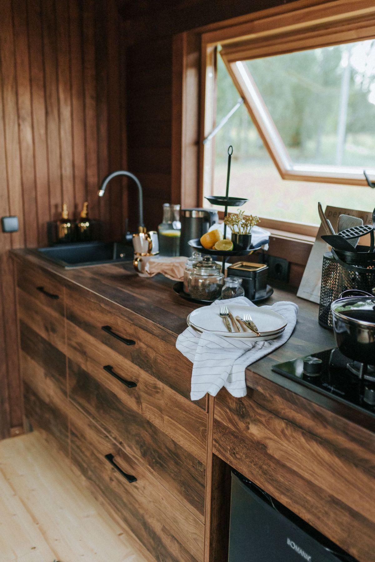 Kitchen: Self-sufficiency never looked this good. From a practical sink, and a fridge to a cooktop of your choosing, this ThermoWood kitchen is not just a cooking space - it’s an experience. And yes, storage? There's plenty.