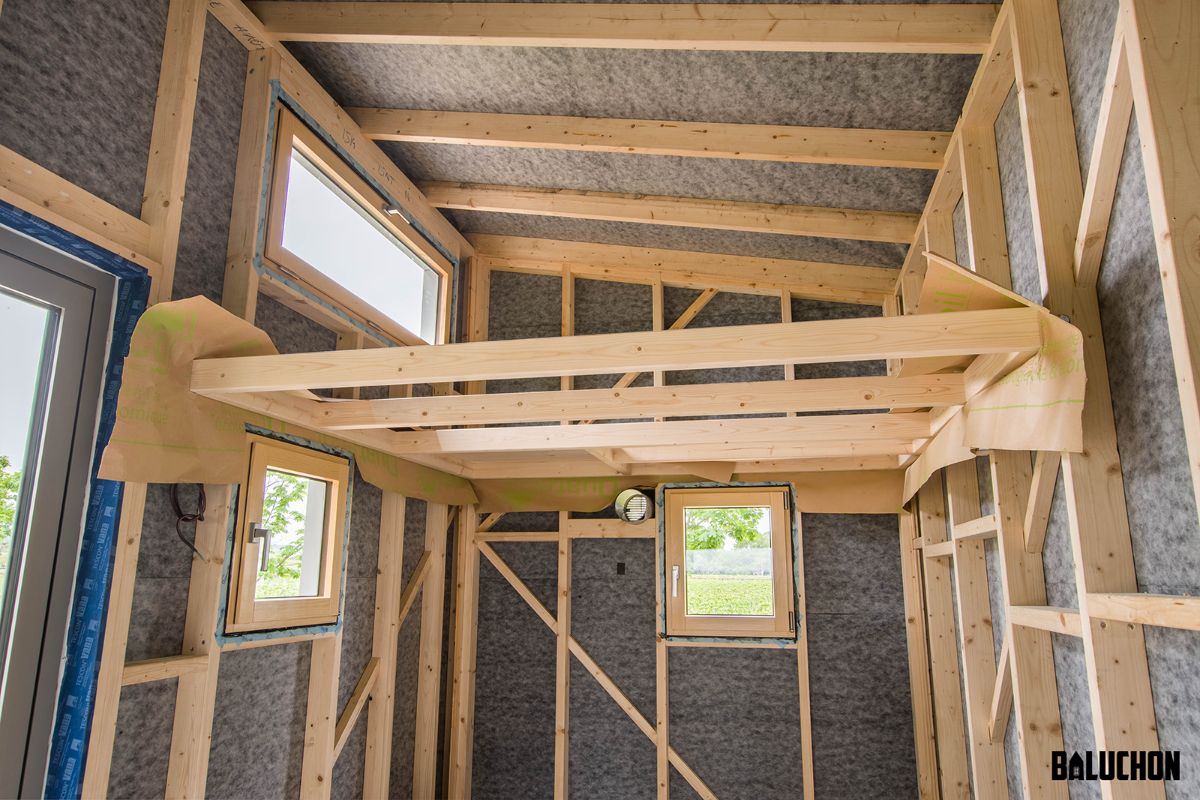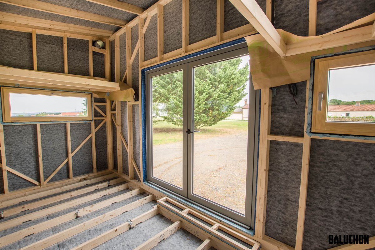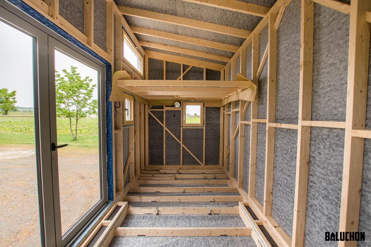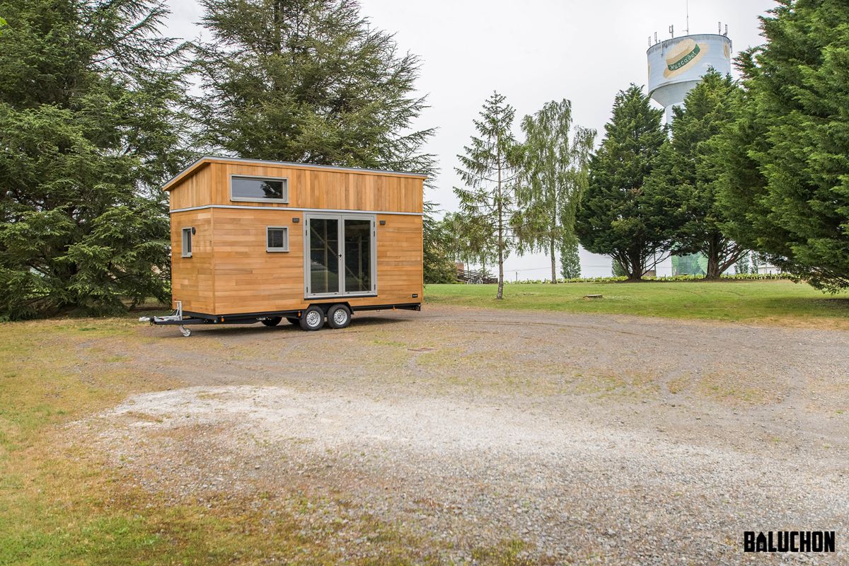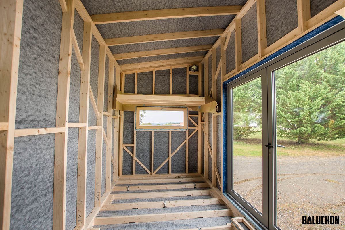 The exterior looks pretty basic and does not display anything extravagant which may seem like a slight drawback as most tiny houses built by Baluchon look wonderfully lavish and stylish on the outside as well as on the inside. The external facets showcase wooden planks seamlessly laid into the Olivier in a vertical as well as a horizontal fashion. This creates a certain pattern that makes the exterior appear sophisticated. The single slope roof prevents the build-up of mold and mildew caused by rainwater damage. This ensures the longevity of the roof and makes it a long lasting feature that is additionally easy to maintain.