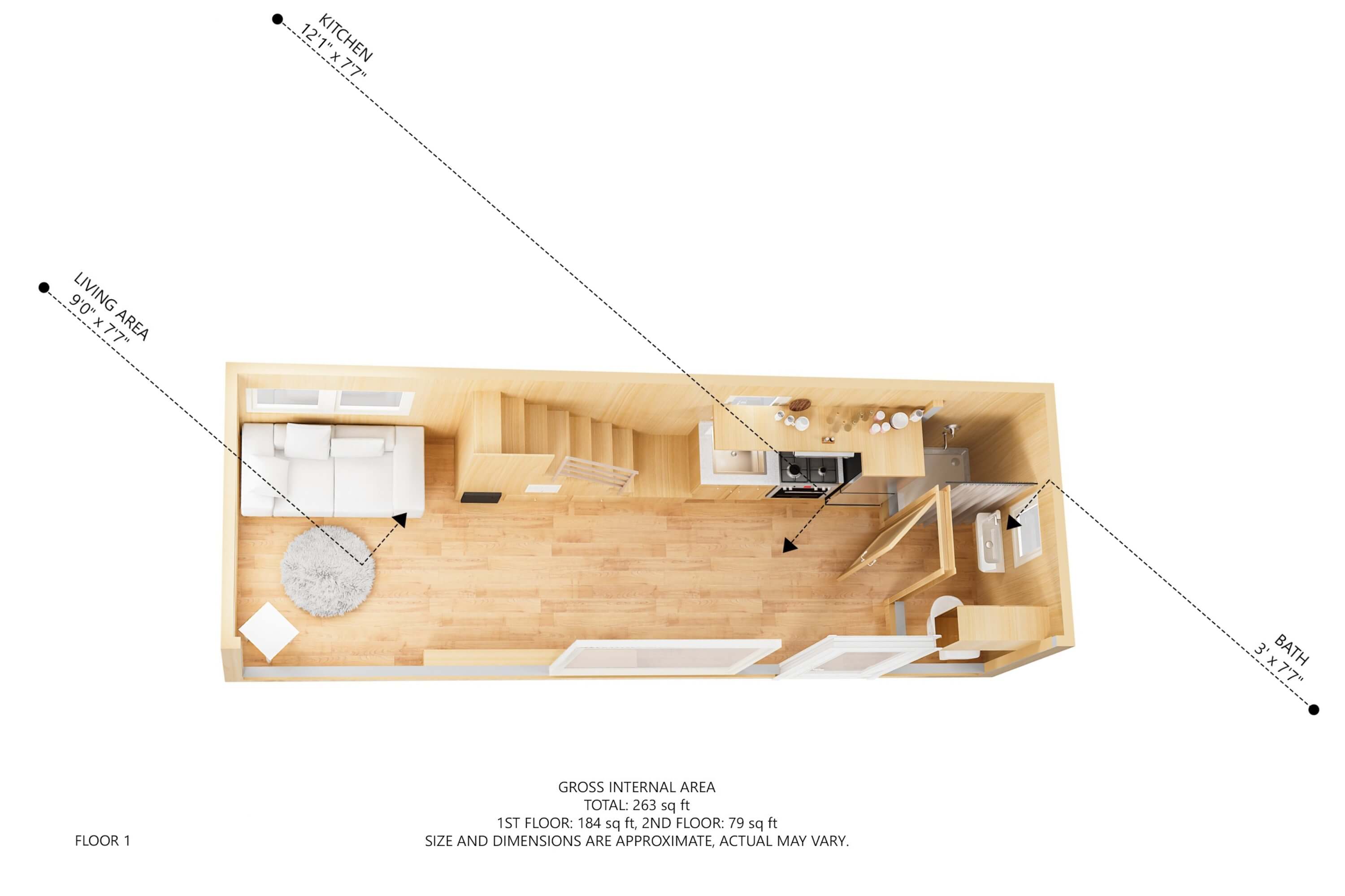 The interior of the Escape Traveler One spans 276 square feet, including a second floor. This generous square footage provides ample room to create a personalized living space, tailored to individual needs and preferences. The flexibility to customize the layout is a significant benefit, as it allows occupants to fully express themselves and create a living environment that suits their specific lifestyle, whether it's a cozy retreat, a functional workspace, or an artist's studio.