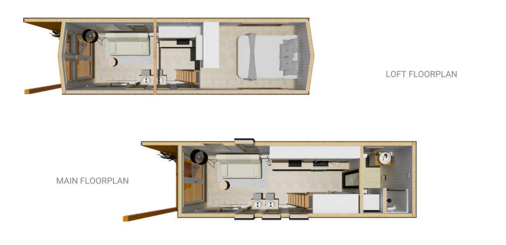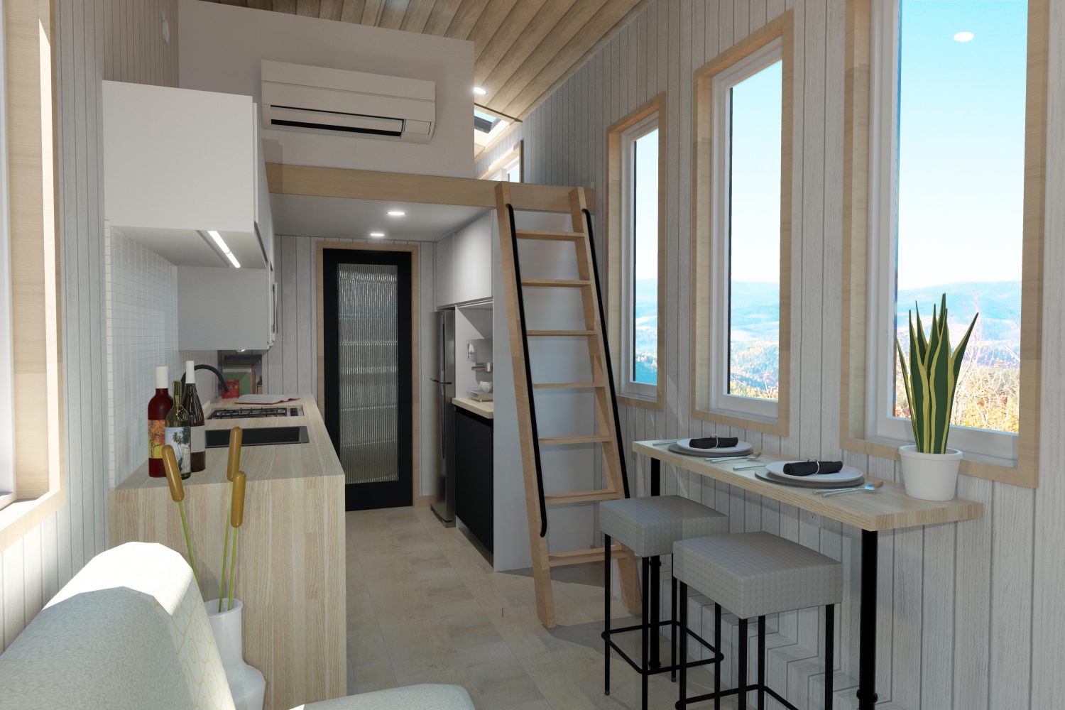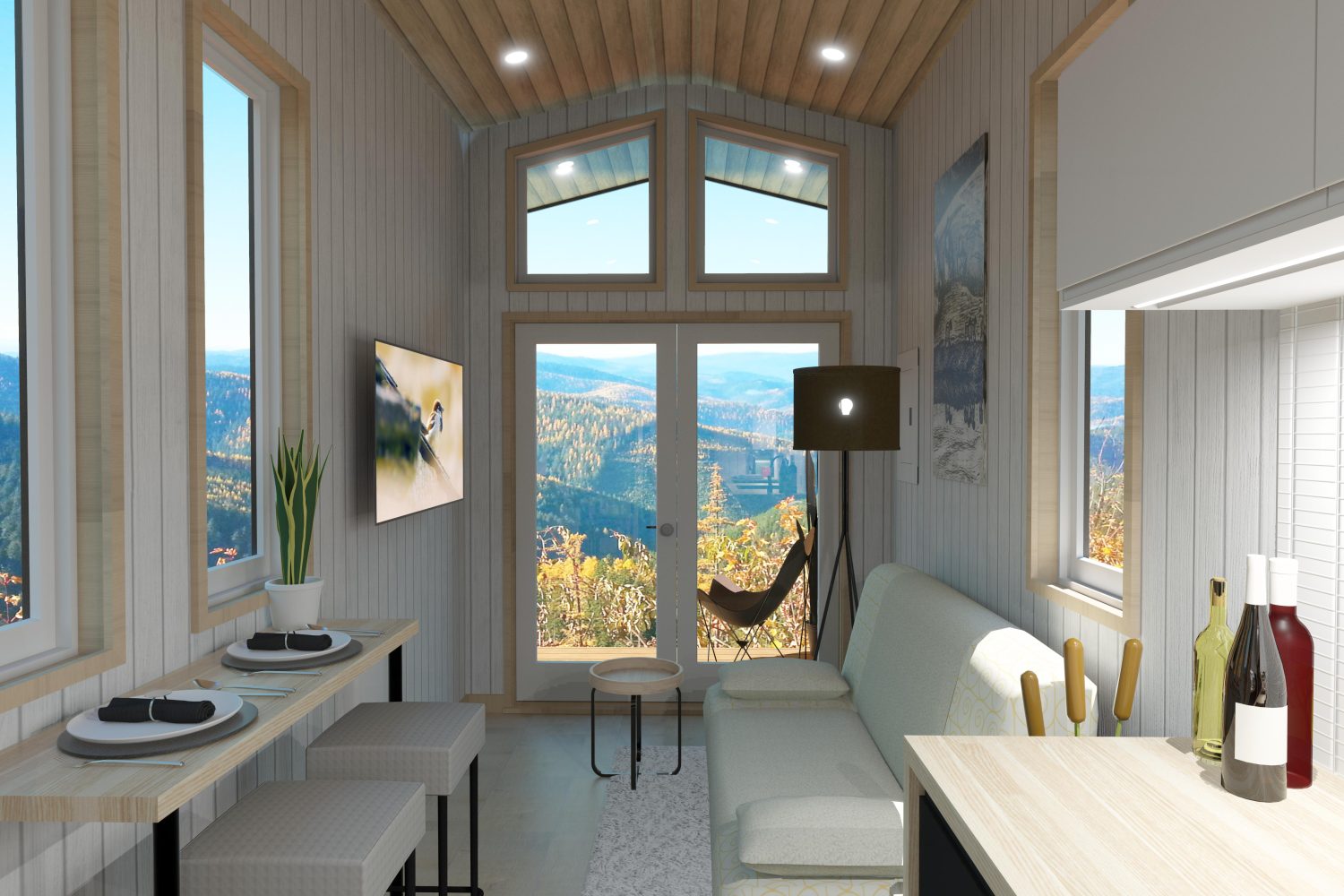 Let's delve into the remarkable specifications and design details that set the Onyx 2630 apart from the rest. The exterior boasts sleek and durable metal standing seam siding, exuding a modern aesthetic while ensuring long-lasting quality. Inside, the vertical wood paneling lends a touch of warmth and sophistication to the living area.