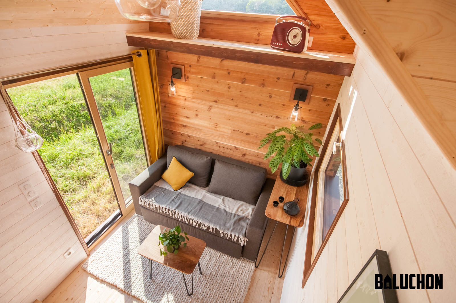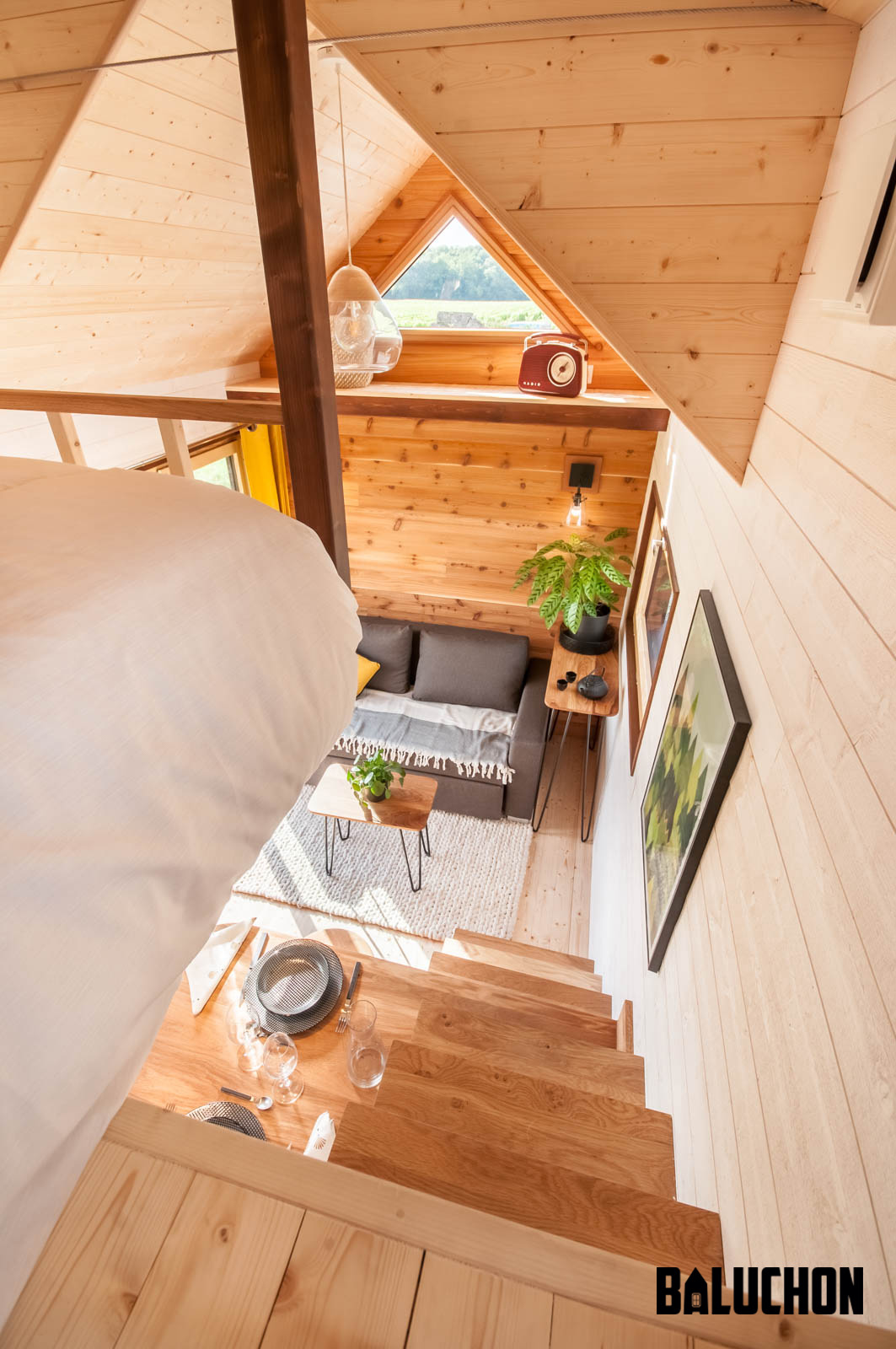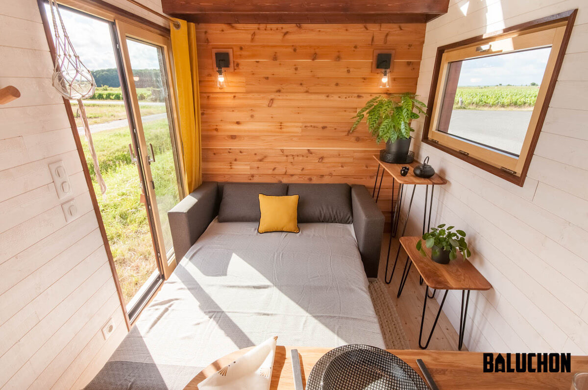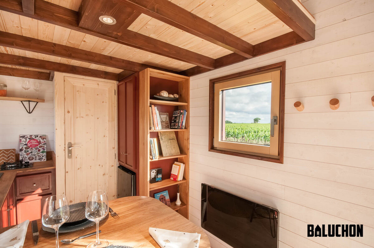 The kitchen is the most striking place in the Pampille that puts on a fine show of creativity in terms of interior design. This tiny house offers sufficient space to let you lead a comfortable life with your family.