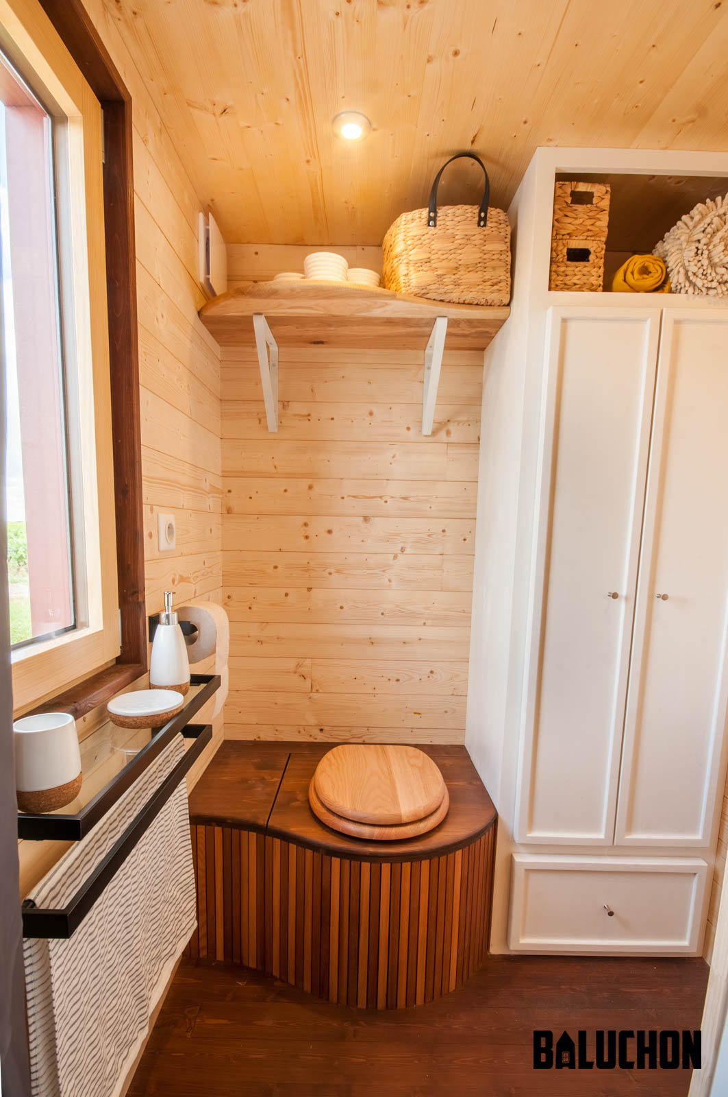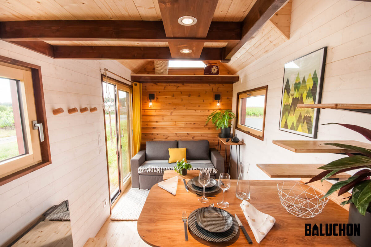 Red and brown make a fine combination to envelope the exterior of this tiny house in elegance. You can detect hints of classic European architecture with a touch of modern design in the Pampille. The interior design screams style and you get multiple space saving features that are provided to you for added comfort. The smart use of available space is what makes any tiny house an excellent home and the Pampille doesn’t seem to disappoint in this field.