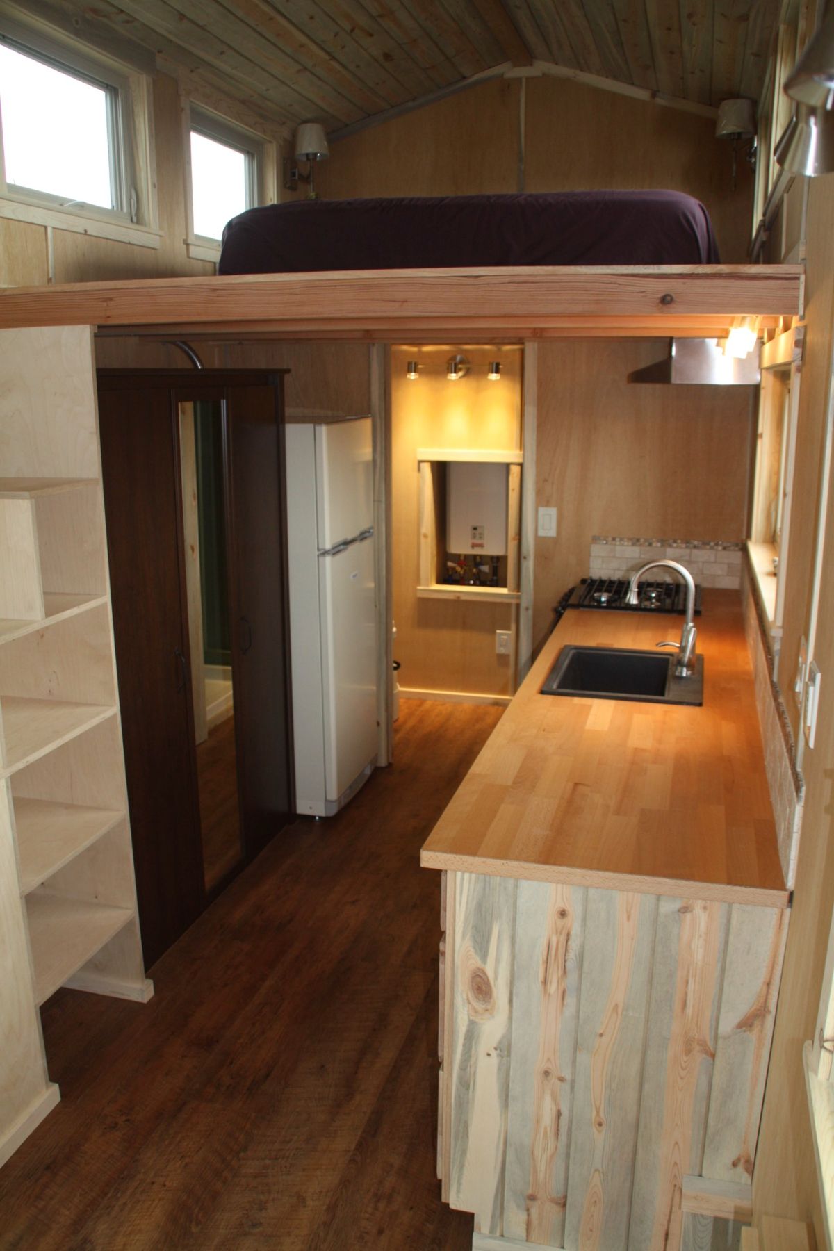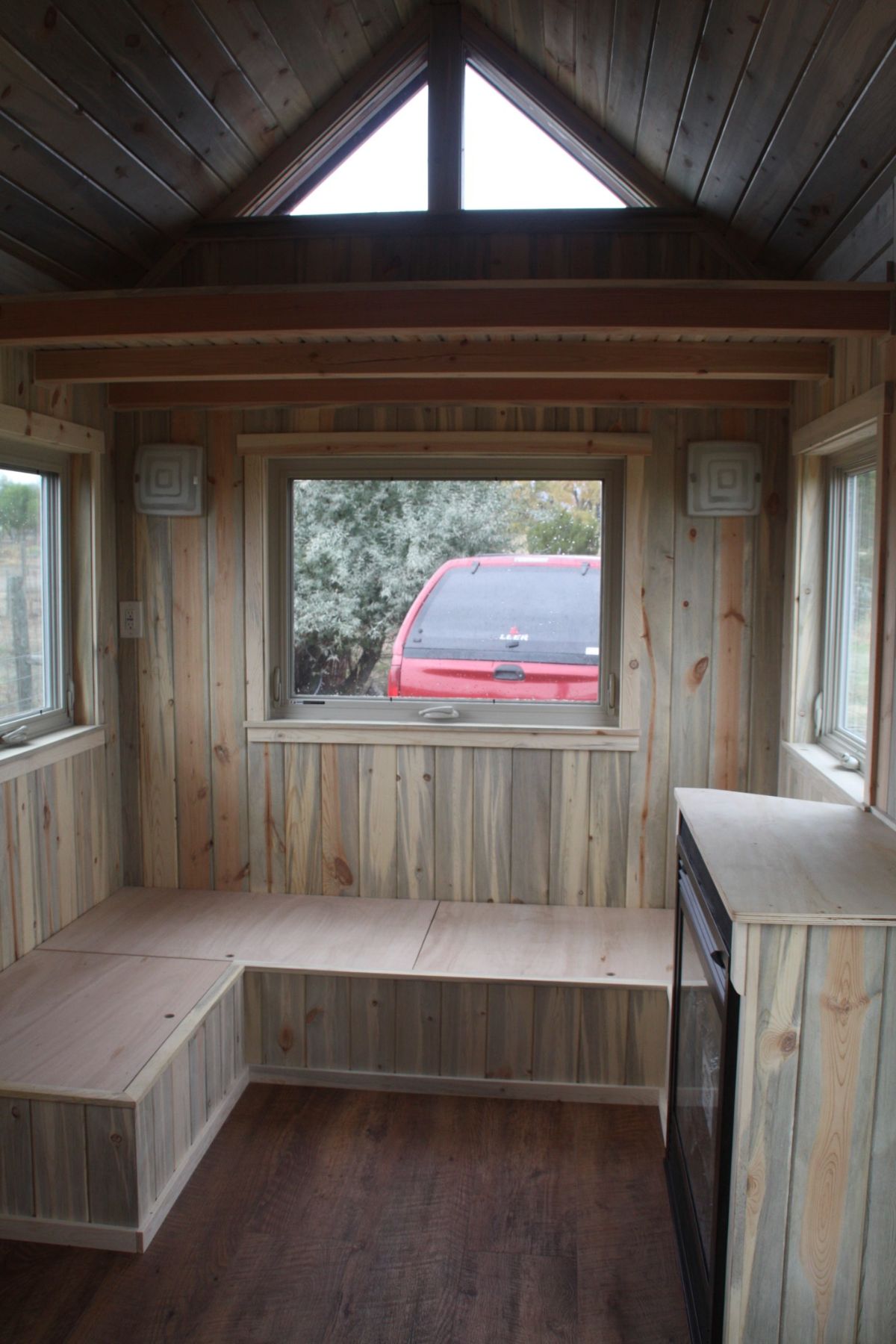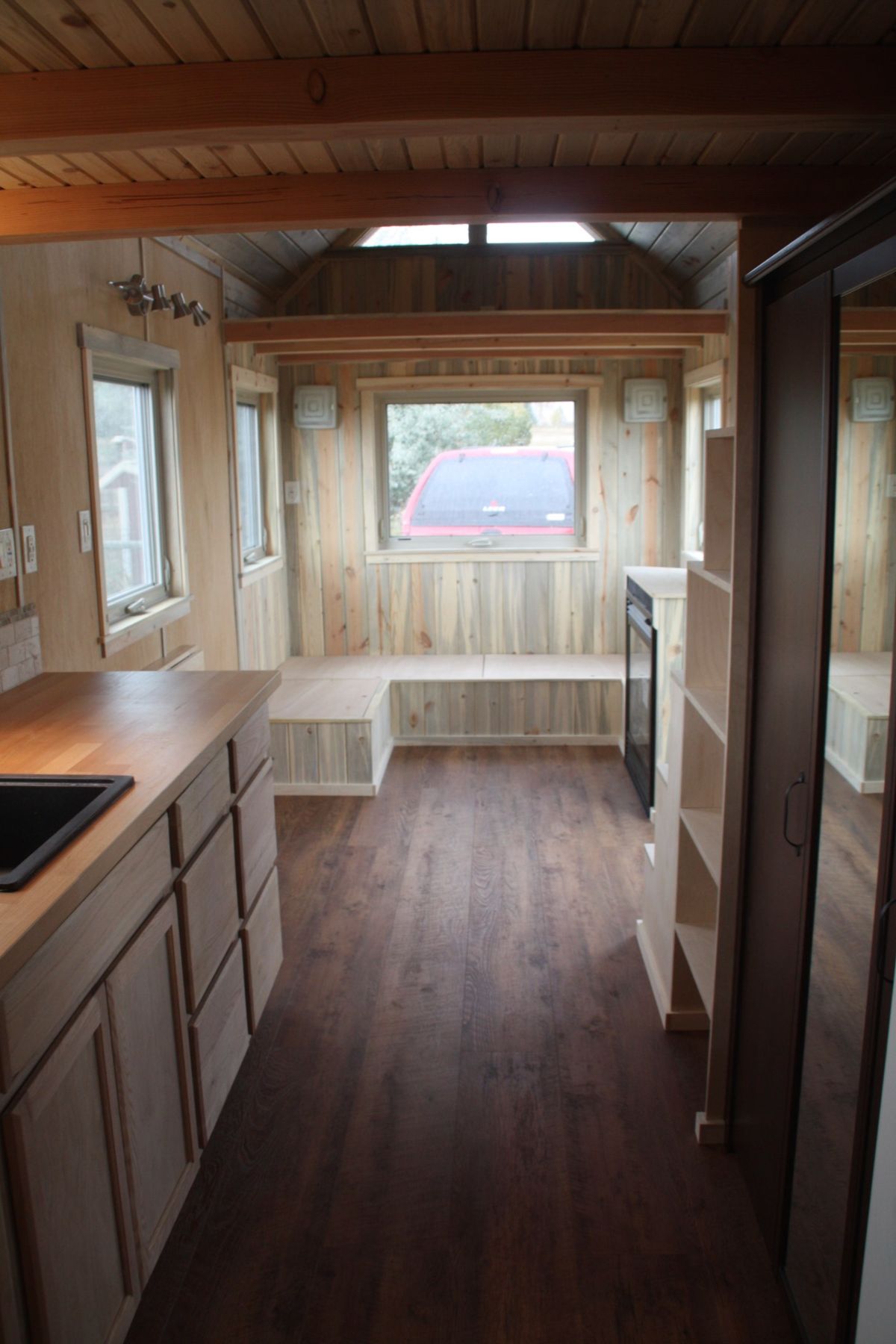 This tiny house features a bedroom, living area, bathroom, and kitchen area. The house looks quite simple but chic at the same time. Windows are there for natural lighting and lights are pre-installed in this compact house. It was built in Colorado and the starting price for this house is about $67,000. The sage green-colored roof matches with the brown exterior. For an in-depth review of this tiny house, stick to this write-up till the end and you will get to know whether to buy this tiny house or not.
