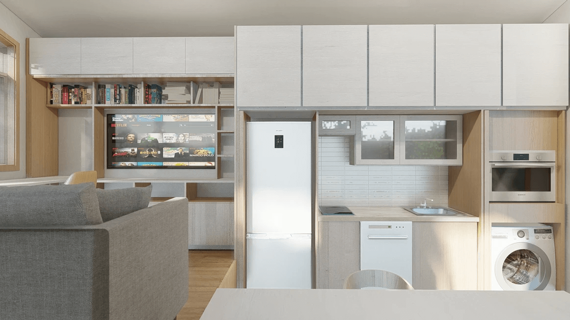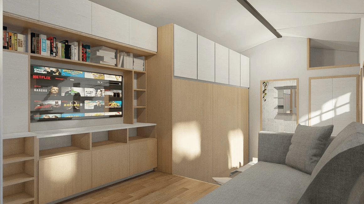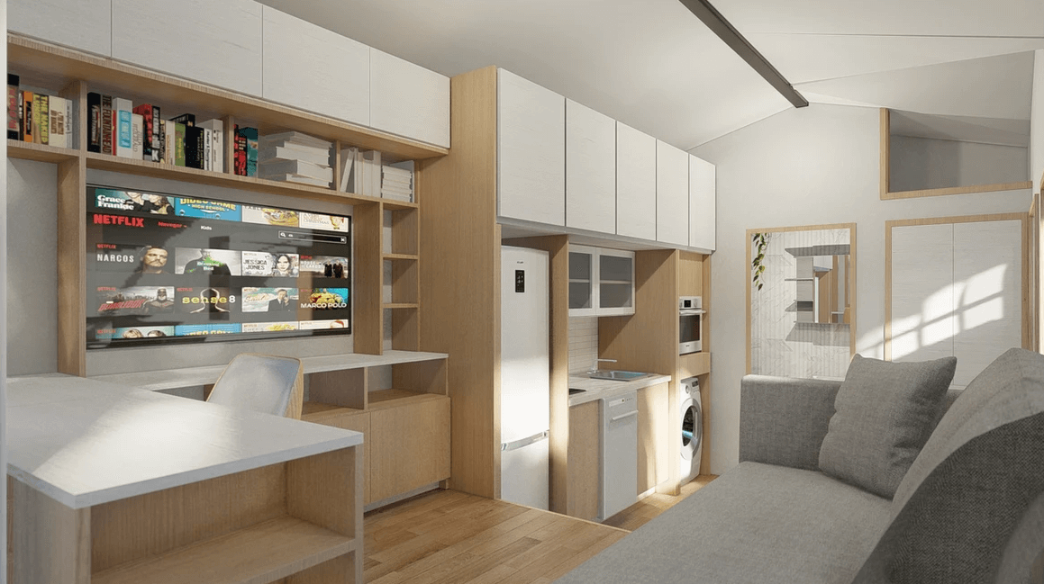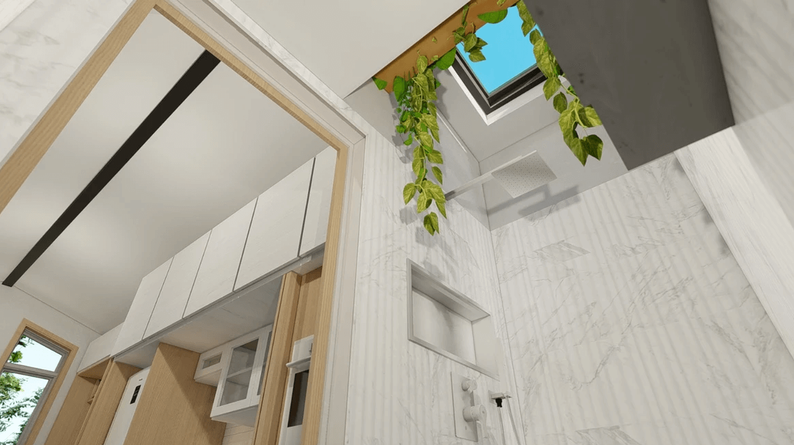 Sakura from Acorn Tiny Homes impressively marries functionality with aesthetic appeal, presenting a thoughtfully designed living space that prioritizes efficiency without compromising on comfort. The Japanese-inspired touches, coupled with the meticulous interior layout, create an inviting atmosphere within the compact dimensions. We appreciate the inclusion of innovative features such as the sliding bed, energy-efficient systems, and the invisible kitchen concept, showcasing a commitment to maximizing every inch of space.