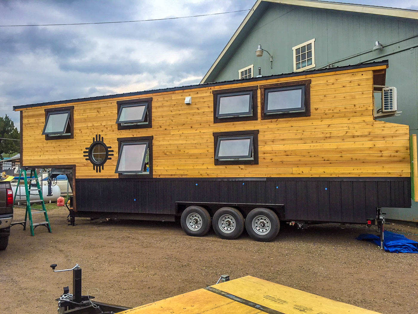 The Santa Fe is a cleverly designed tiny house that not only provides space and all the required amenities but also reflects the remarkable choice of selecting substantial materials to guarantee low maintenance and longevity. Despite having a decent capacity of up to 4 people, there is only 1 washroom which seems slightly cramped. The abundance of cabinets, shelves and closet is strategically placed and the entire layout seems well planned. The kitchen and the living room together spare little elbow room and for 4 people it might become congested to be present in this area at the same time. However, the sleeping lofts are commodious and the staircase access is sturdy. The dual toned exterior looks just as good as the interior and the mix and match of circular and rectangular windows complete the simple yet sophisticated look.