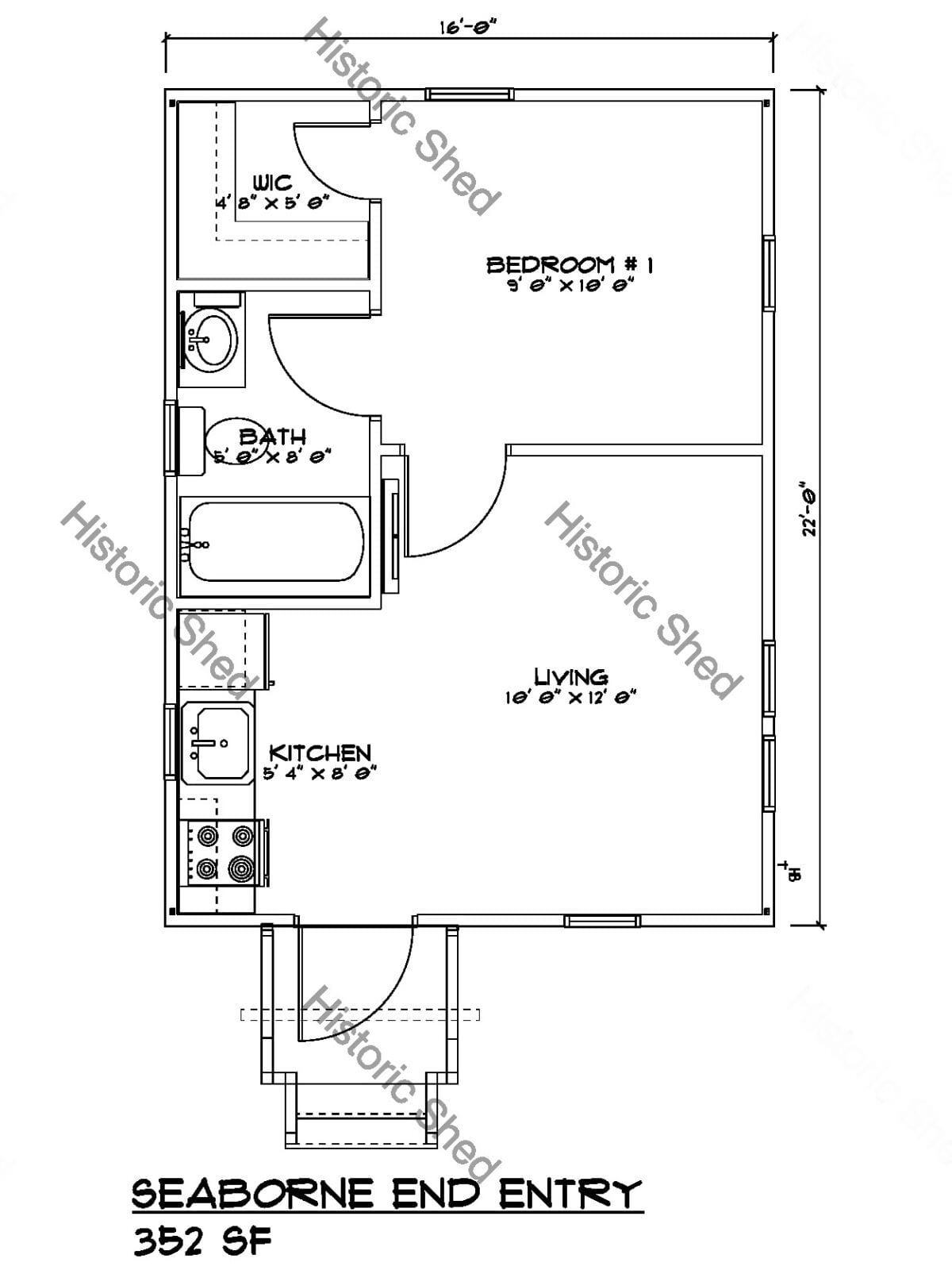 The Seaborne spreads across 353 square feet and provides ample space to the residents for conducting daily chores and everyday activities hassle free. A small covered portico that can be alternatively customised into a full front porch is an excellent feature that offers additional space for relaxing in the open air. The layout of the house is basic yet practical and is broadly divided into two sections- the living room and the bedroom with smaller areas covered by the kitchen and the bathroom.