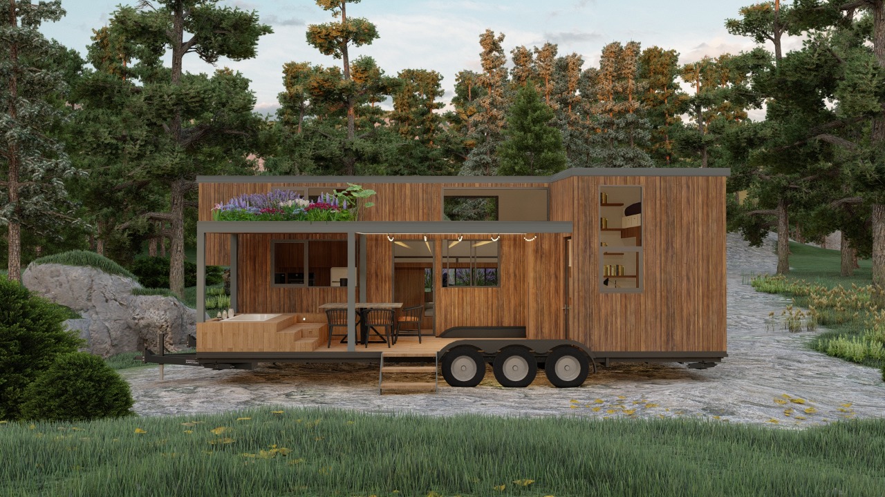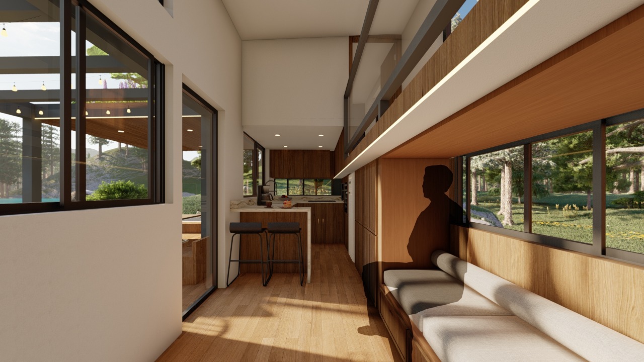 Shaye's Hazel, a creation of Tiny Topanga in collaboration with Shaye’s Tiny Homes from New Zealand, redefines the concept of tiny home living. It brings to life a design that seamlessly blends functionality with compact elegance. The Hazel model, with its 8.5-foot width, is a testament to efficient and stylish living, offering a unique combination of an entertaining space and a separate area for work or hosting guests.
