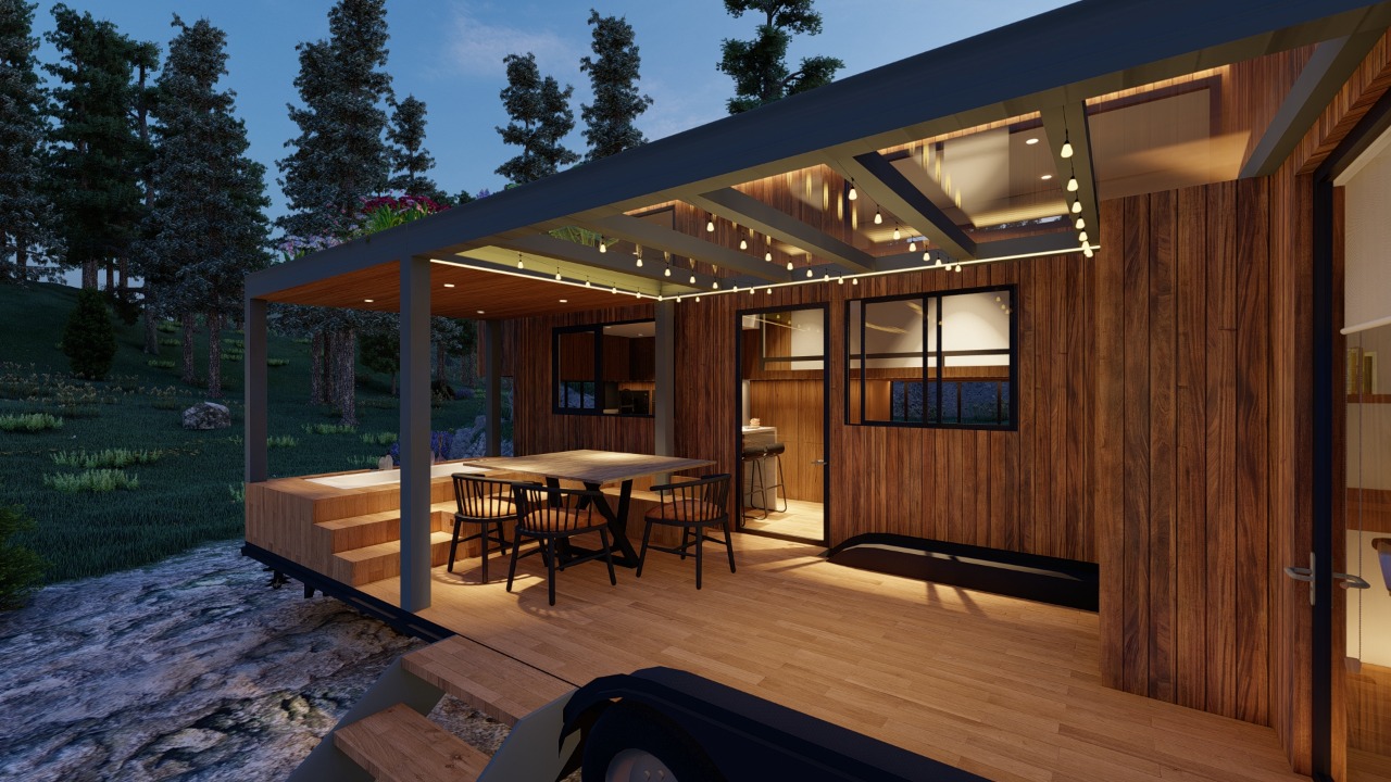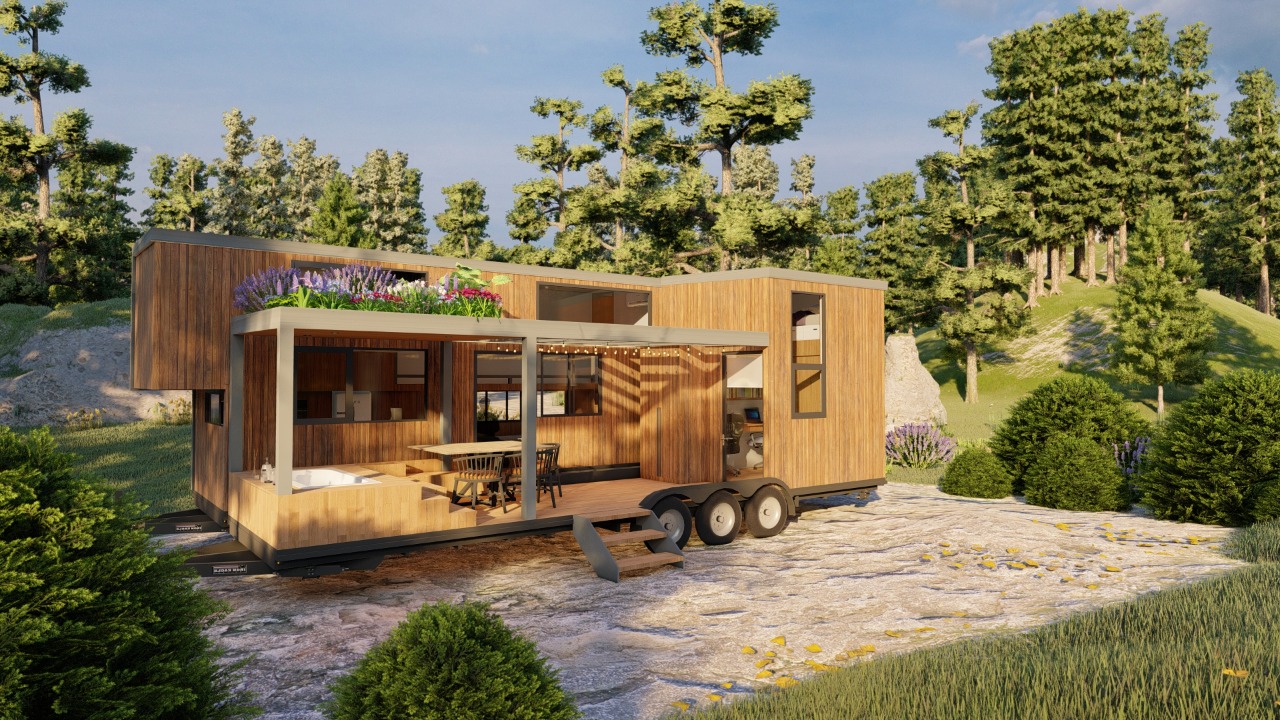 One of the standout features of Shaye’s Hazel is the second trailer, which can be used as an outdoor office or guest room. This addition enhances the functionality of the home, providing extra space that can be adapted to various needs.