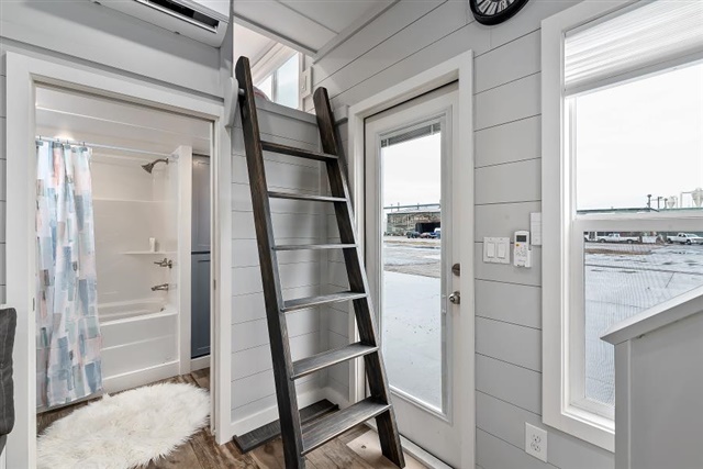 A hallmark of The Arion is its ability to comfortably sleep six, transforming it into a home away from home. Two private sleeping lofts, one nestled above the kitchen and another perched over the bathroom, provide peaceful retreats for rest and relaxation. Each loft can be accessed differently; the rear loft is equipped with wide, easy-to-climb stairs, while the front loft offers an adventurous climb up a hanging pine ladder, adding an element of fun and whimsy to the overall design.