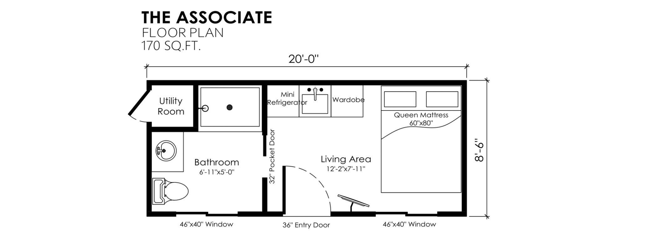 The Associate is a compact 20ft tiny home that marries utility with function. It's small floor plan is very well utilized and provides all the basic necessities in a turn key solution.