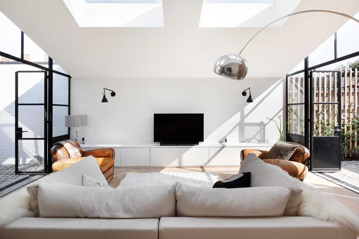 There were many complications of the design including window placement. There was very limited walls that would allow for windows, so in order to maintain a bright and airy home, there are large skylights in each room to let in the light. And in addition, they created an internal courtyard in the center of the home and and where possible, walls of windows looking out into the courtyard. Hence, the name of the home!