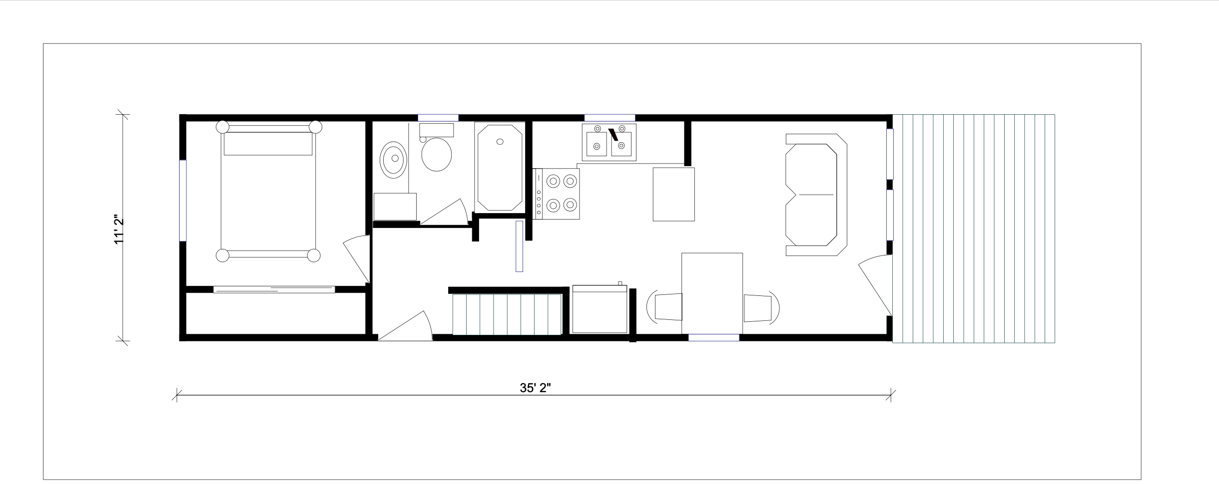 For the exterior lap siding, the Loft Model has beige panels installed in a systematic order and pattern. The exterior also holds and exhibits broad glass windows that come in different sizes to not just provide utility but also to make a style statement. The windows keep cross ventilation in check while also allowing the residents to get a good view of the outside world while sitting in the comfort of their home. The portico extended in the front of the house is a unique and useful feature that is spacious and can be used for outdoor lounging. You can place patio furniture such as a small round table and chairs here to enjoy the outside world’s ambience.