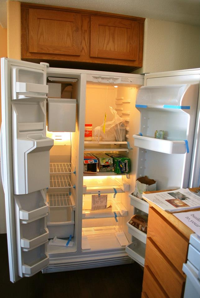 The kitchen island and bar stools together provide additional seating space while this combination can also be used as a work space or a breakfast table. The open kitchen is spacious and remains radiant during the day due to the big glass window. In terms of appliances you get a white coloured 4 burner gas stove and oven combination that serves its purpose while also looking great along with a double door refrigerator. There are cabinets fixed in the wall that also have space for adjusting a regular microwave.