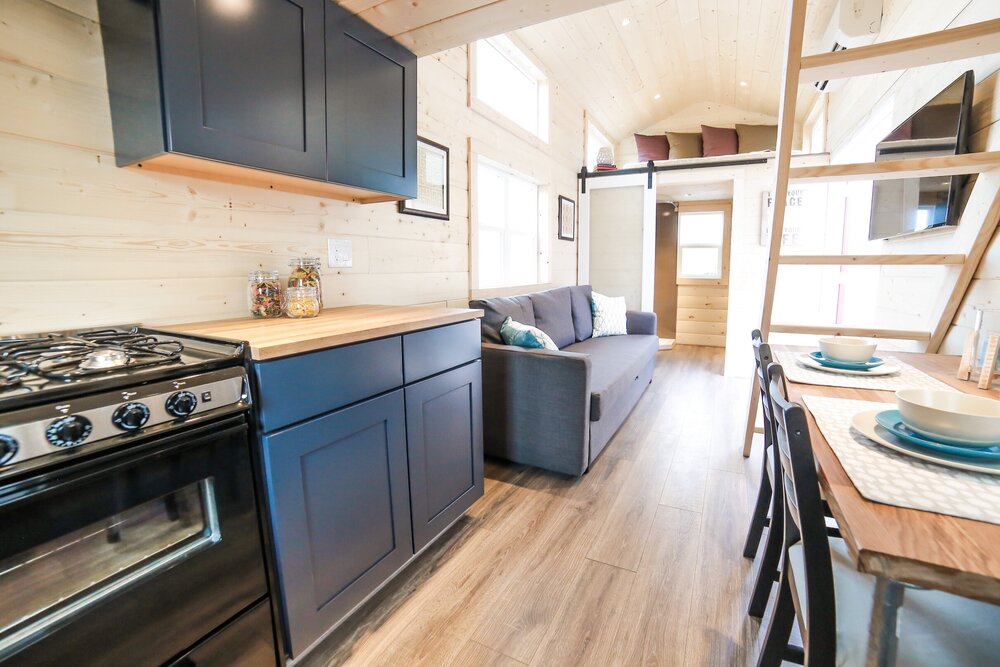 The Mansion is a great tiny house for its price as it comes bearing a number of useful features that let the residents live comfortably. The Mansions covers a total area of 270 square feet and holds a roomy layout. The exterior of the house looks winsome due to its beautiful light colour scheme. The use of beige and blue colours to coat the exteriors of the house shows the amount of meticulous attention paid to design and detail.