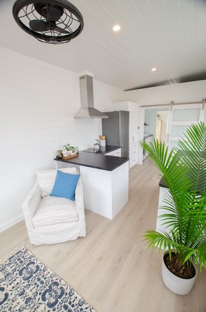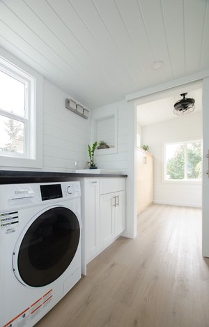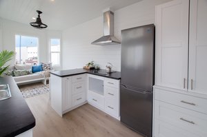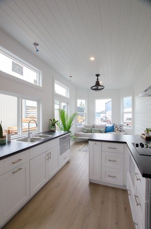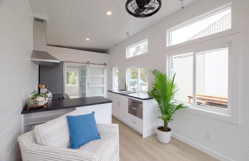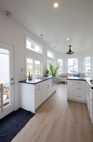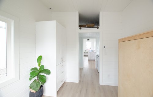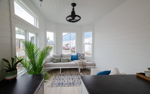 The Mountain Chickadee is a tiny house with many benefits, making it an ideal choice for those seeking a compact and cozy living space. With its extra windows and fully white interior, this tiny house creates a bright, open atmosphere that defies its small size. The abundance of natural light and spaciousness contribute to a sense of freedom and comfort.