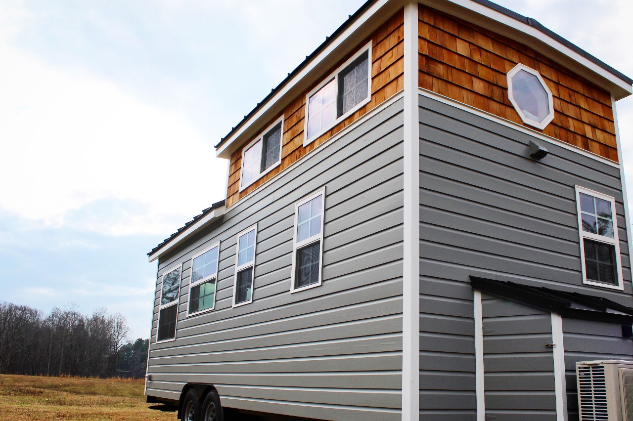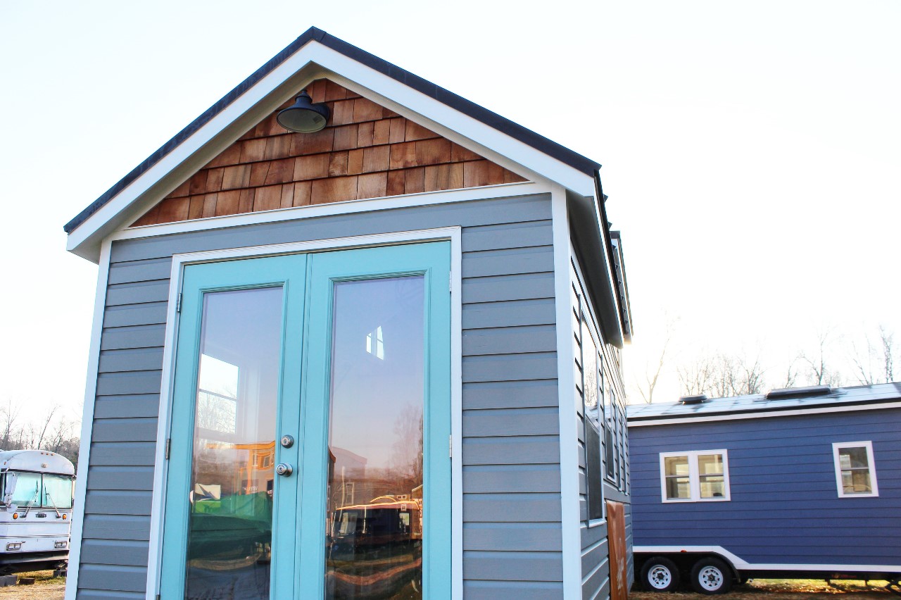 The dual styles displayed on the exterior walls show the amount of thought that went behind designing and crafting the great looks of this tiny house. The use of traditional lap siding in a muted grey colour for most of the exterior demonstrates a safe architectural choice whereas the upper portions of the walls are used to make a style statement and for this purpose they hold wooden panels installed to give an illusion of a brick wall and to add some more texture to the external look.