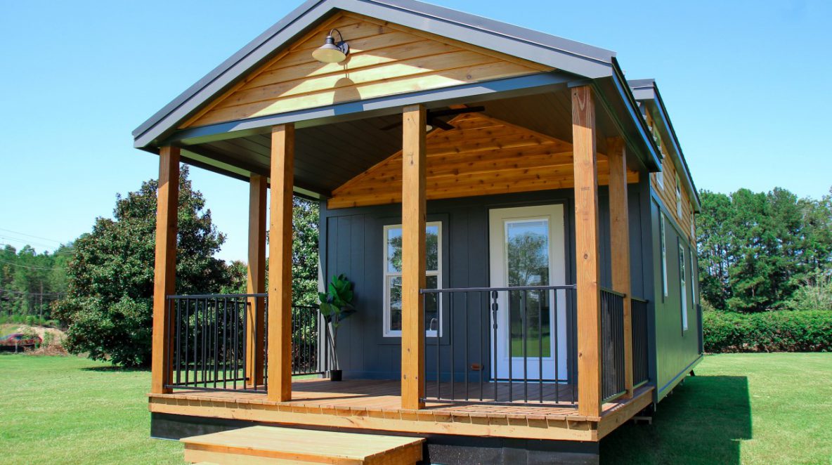 The exterior’s colour scheme is very elegant and the entire house follows a contemporary theme that most tiny houses don’t. The wooden lap siding used in the upper half of the trailer is brown in colour while the rest of the trailer exhibits vertical shiplap in a chic black shade. The black and brown colour combination is a wonderful choice and looks timeless. The portico in the front of the house stands on 4 brown pillars while the roof is coated in black in order to maintain the aforementioned theme and the colour scheme.