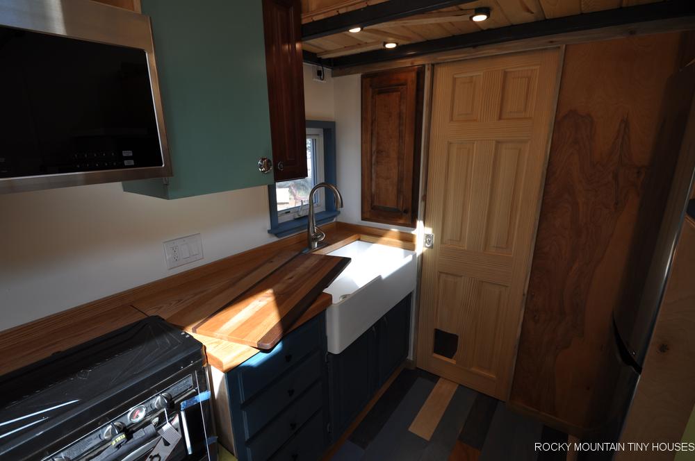 The Tandy by Rocky Mountain Tiny Houses is a modest and affordable tiny house in the market. Rocky Mountain built this house for a young lady working for Air Force. She asked the manufacturer to make separate spaces for her pets that was two dogs and one cat. As her dogs used to disturb the cat most of the time. The size of this small house is around 24 feet. And it is a perfect tiny house for a person with pets or 2 people at the same time.