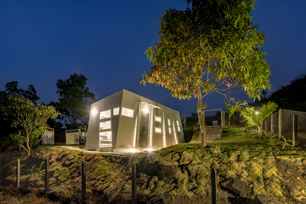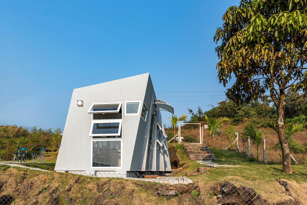 The Twist is a uniquely designed prefab tiny home on foundation that is sure to catch your eye. The walls of this tiny home are slanted and each segment of the home is slanted to a different degree to achieve it leaning to the opposite direction on both ends of the tiny home.