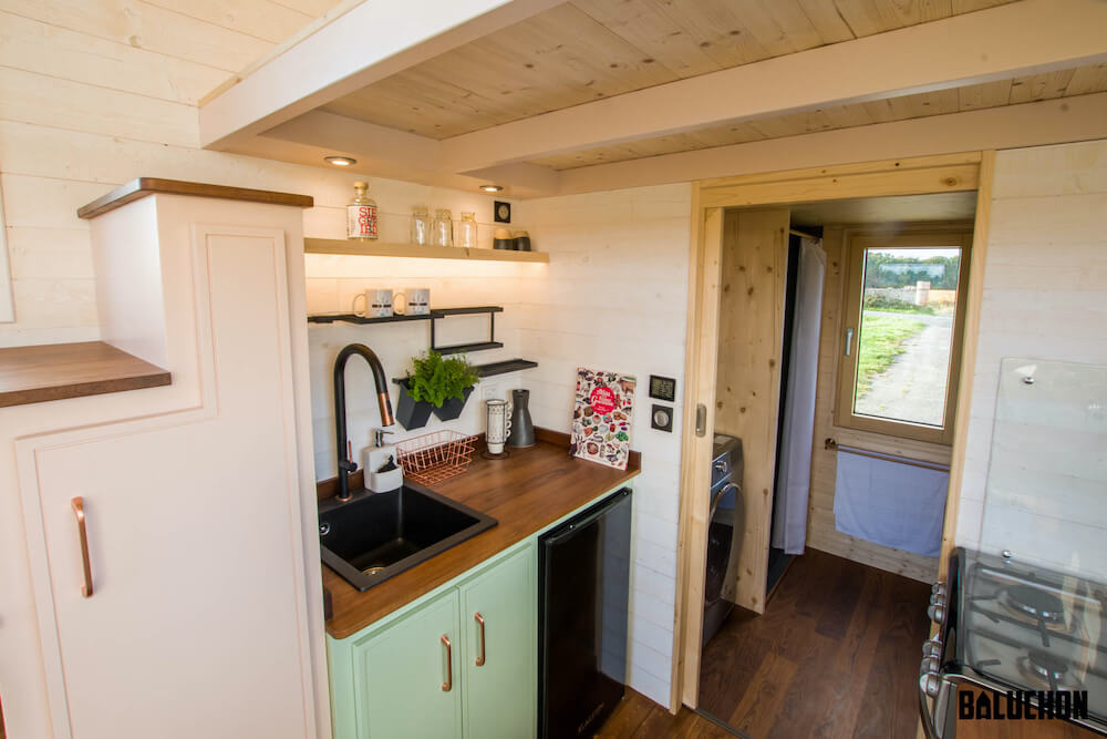 The Ala Köl Tiny House is a brilliantly designed tiny house with all the standard necessary features and appliances, some extra space, and a stunning design aesthetic that flows from the exterior to the interior.